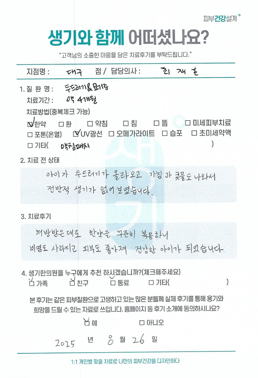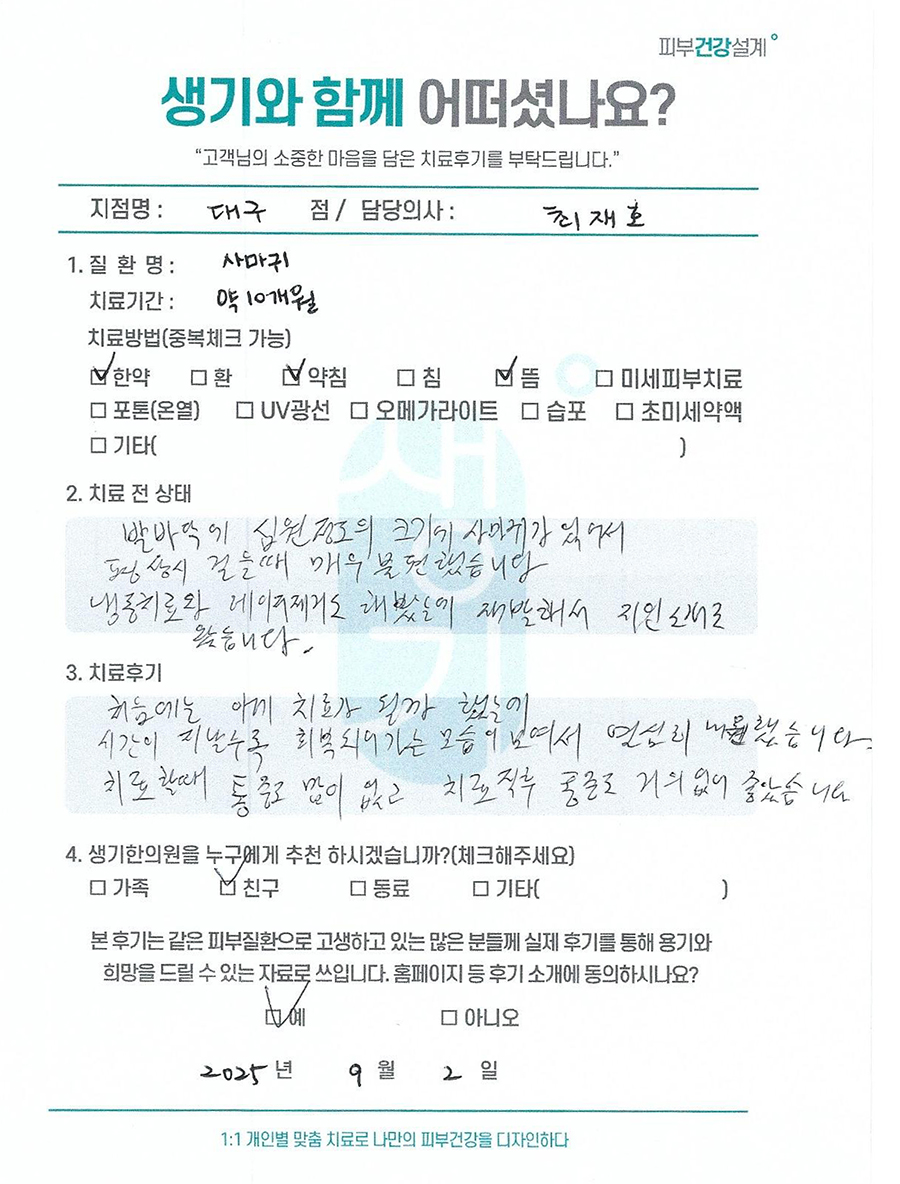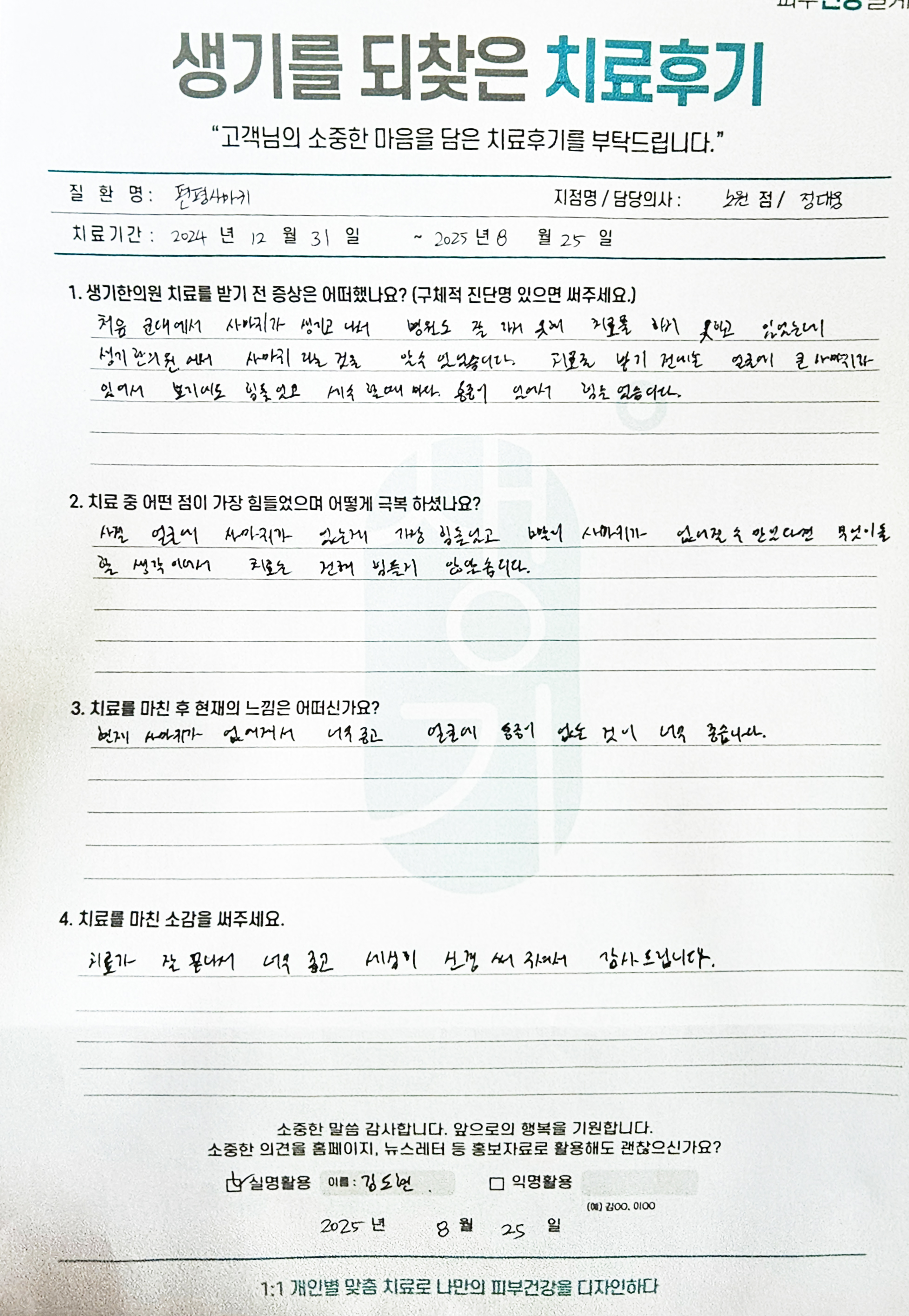 생기한의원과 함께하신 생생한 자필 및 영상 후기를 소개합니다.