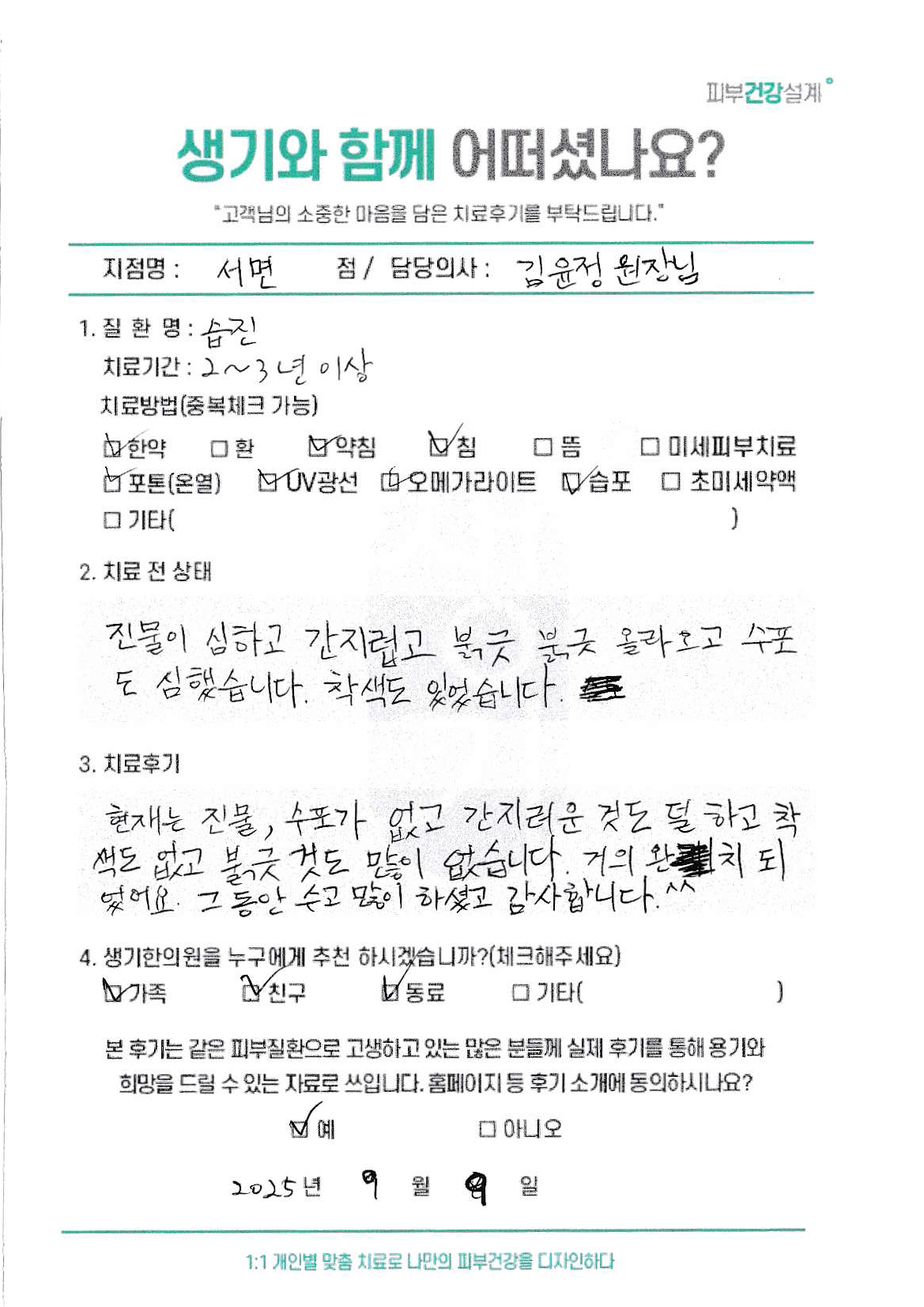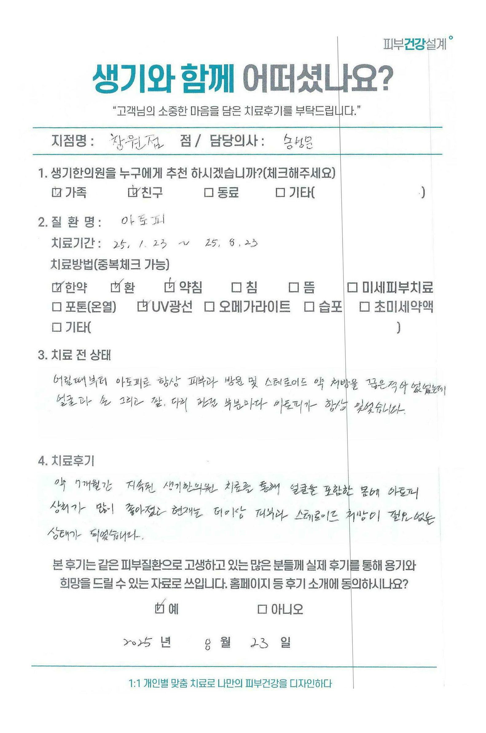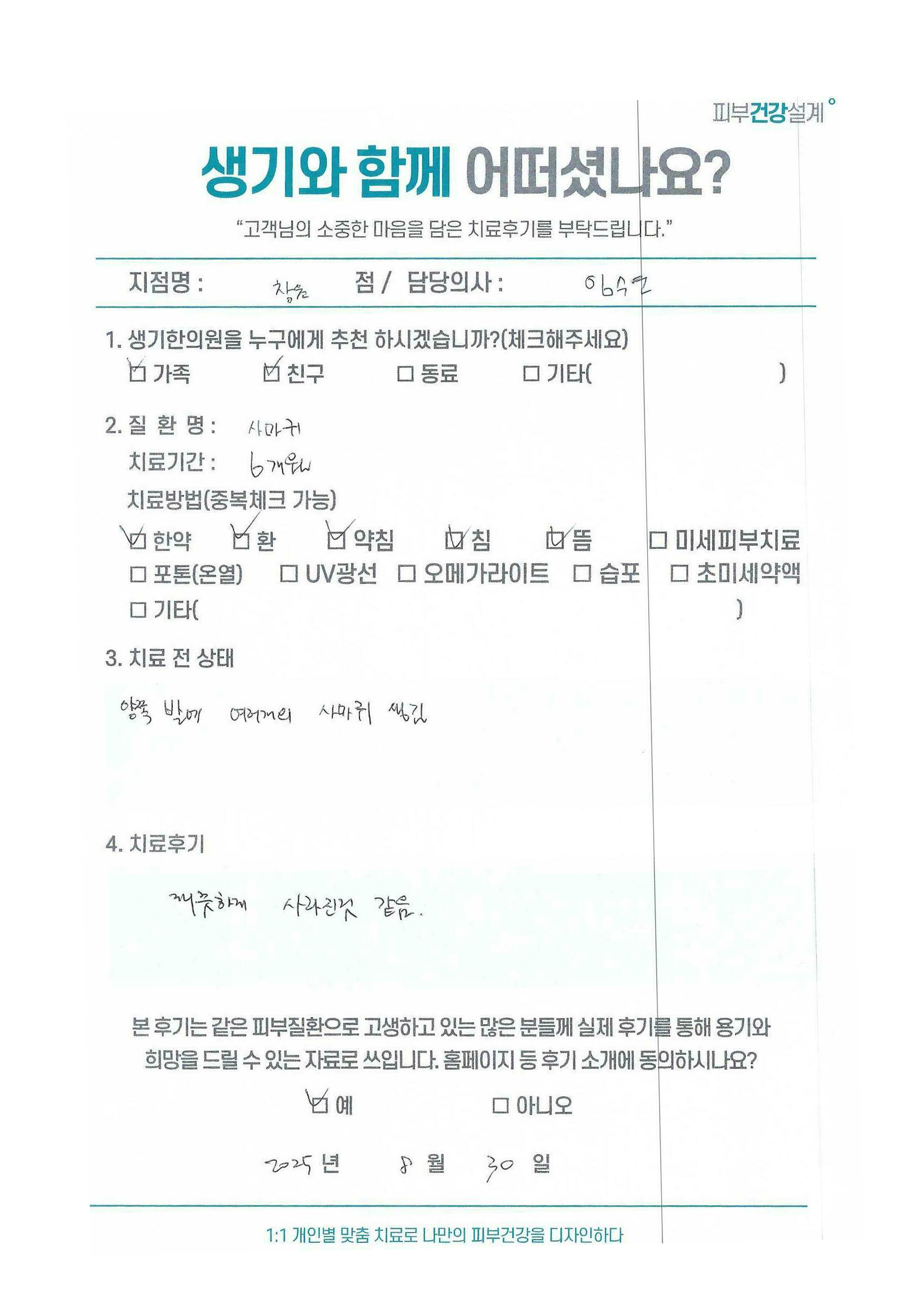 생기한의원과 함께하신 생생한 자필 및 영상 후기를 소개합니다.