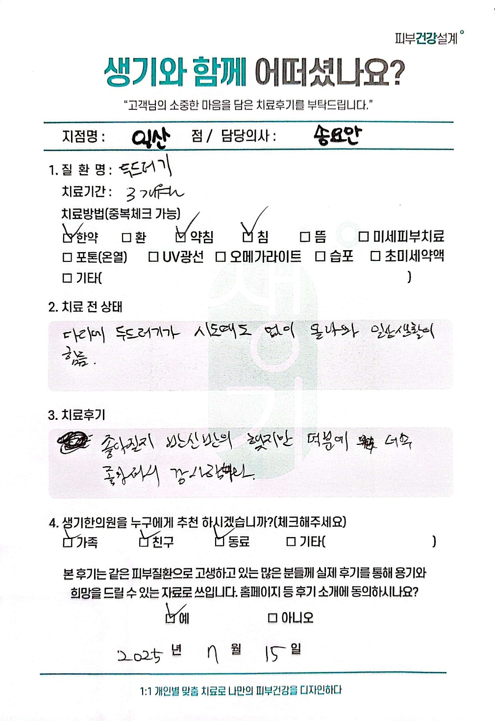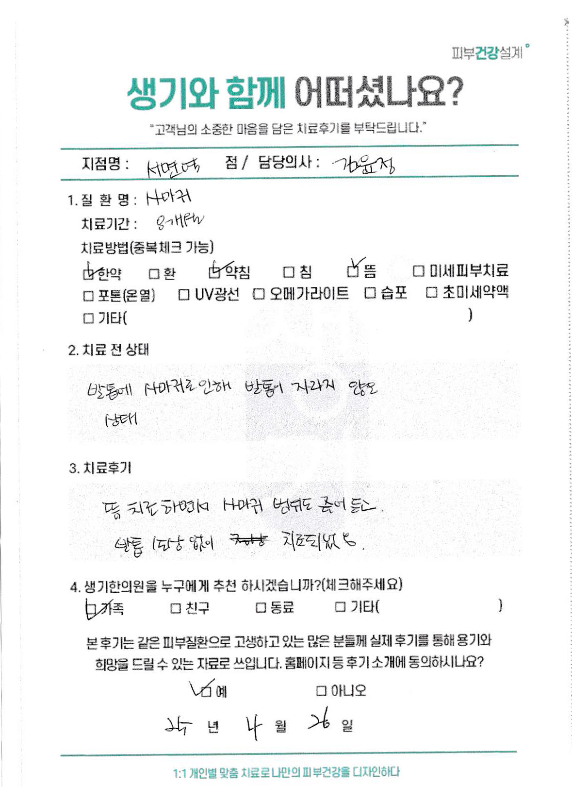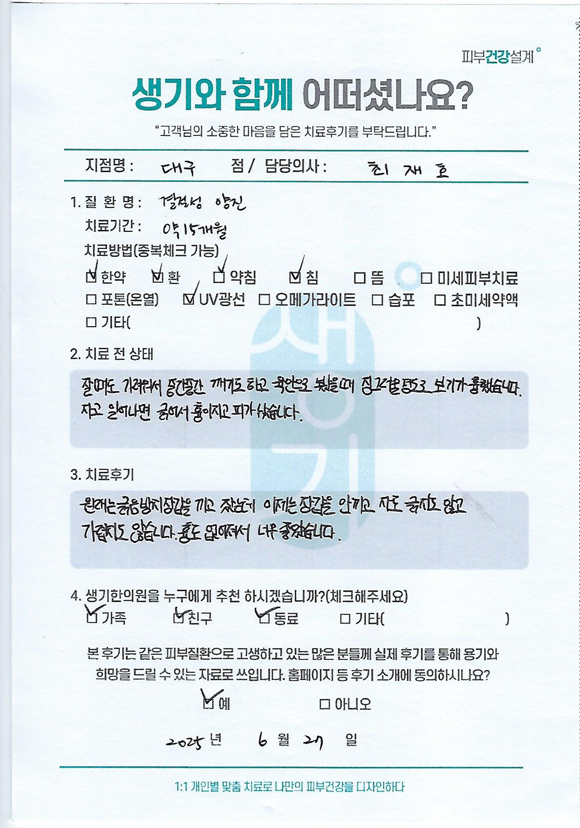 생기한의원과 함께하신 생생한 자필 및 영상 후기를 소개합니다.