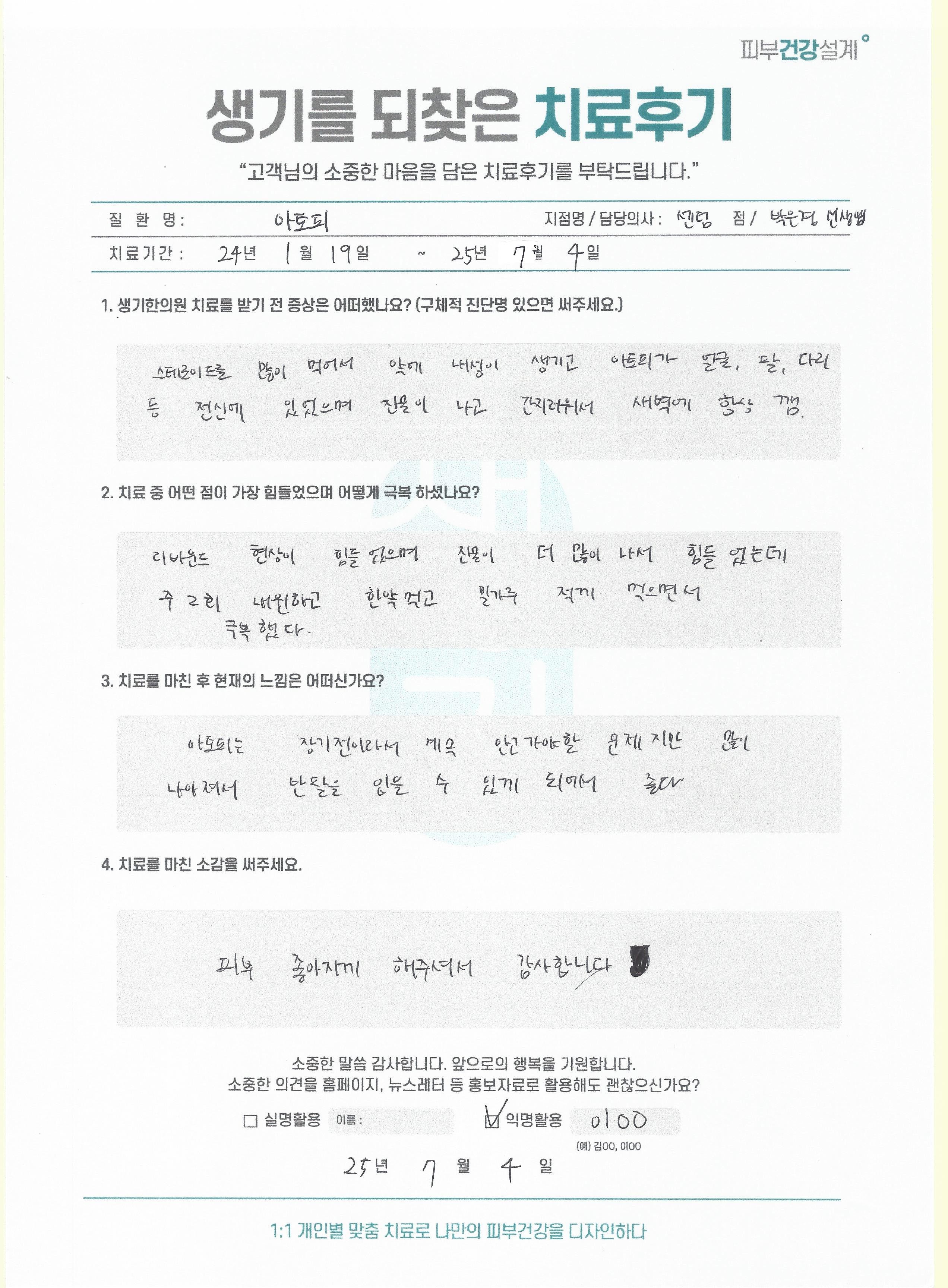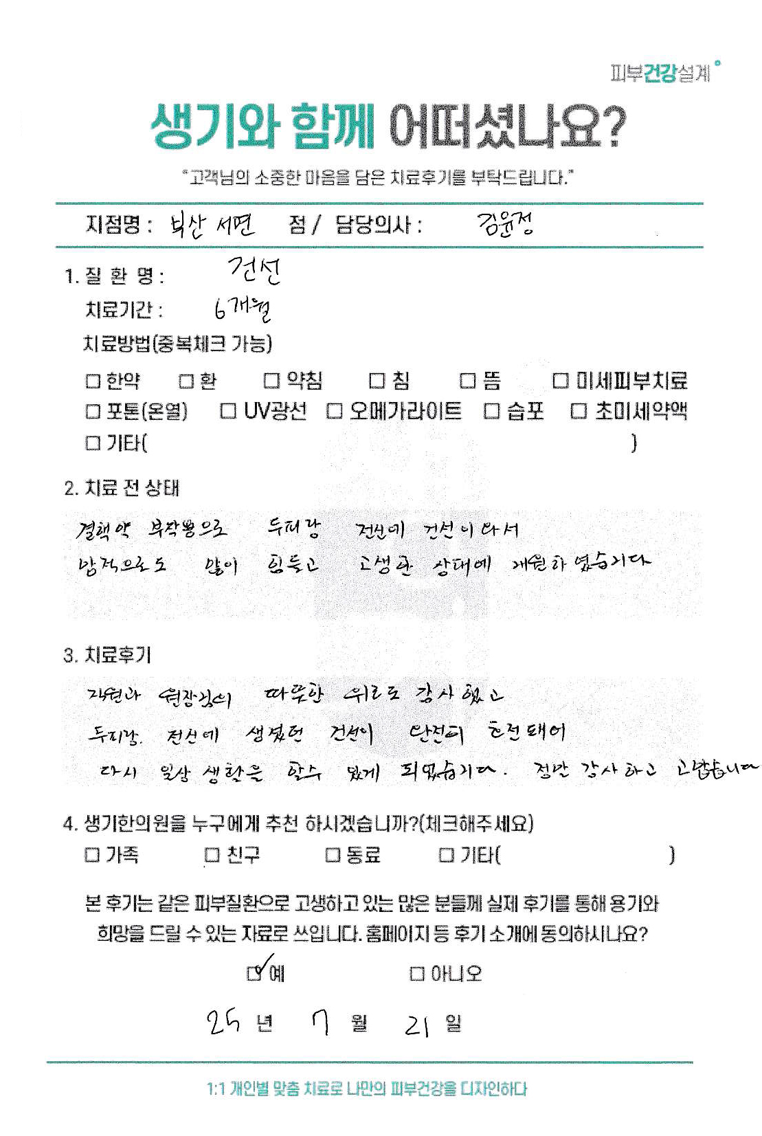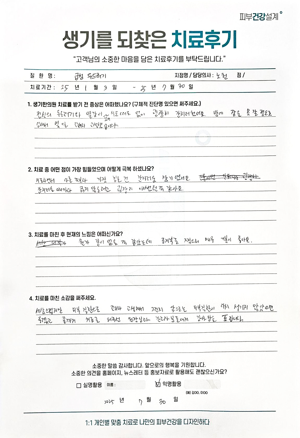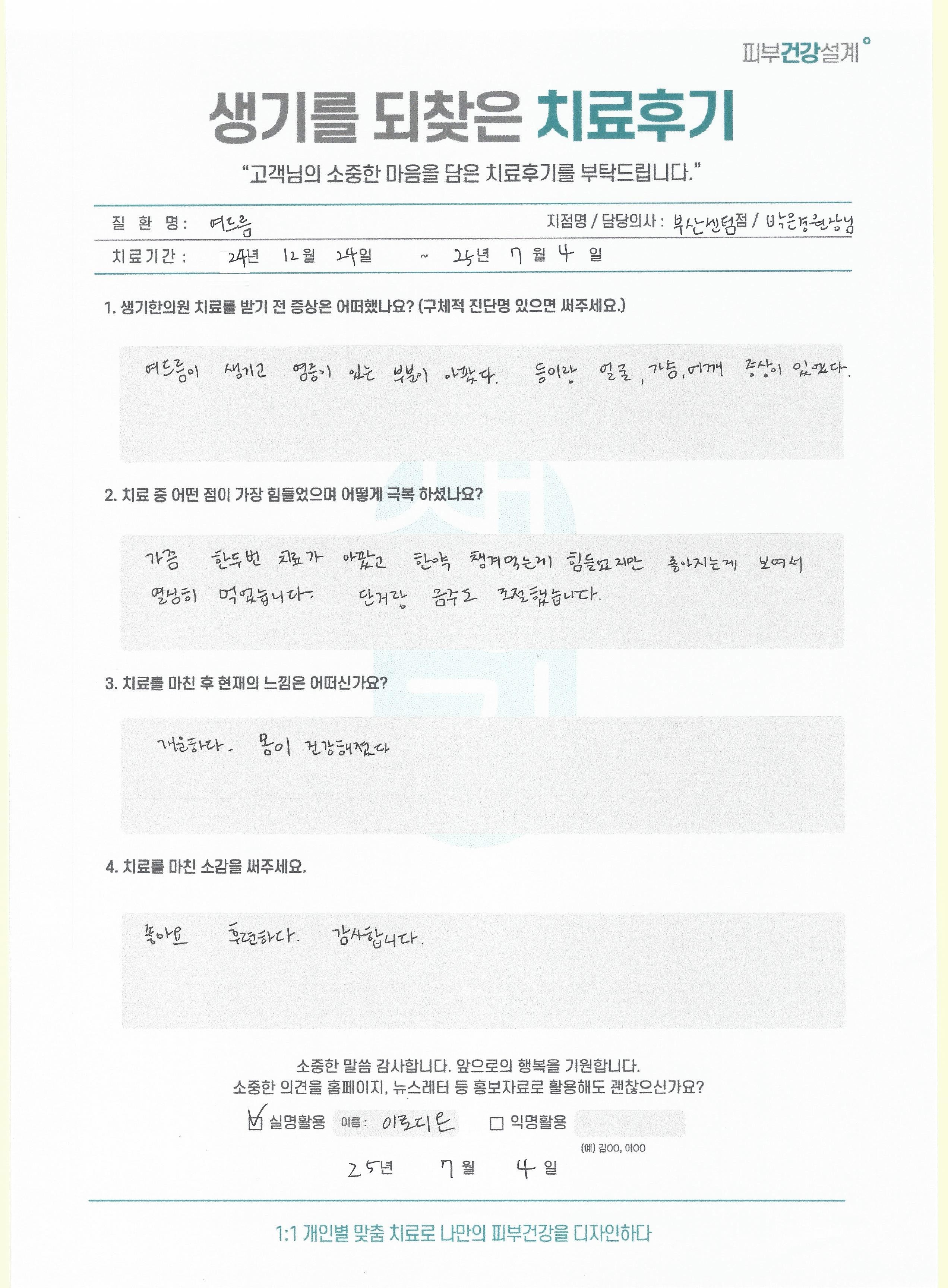 생기한의원과 함께하신 생생한 자필 및 영상 후기를 소개합니다.