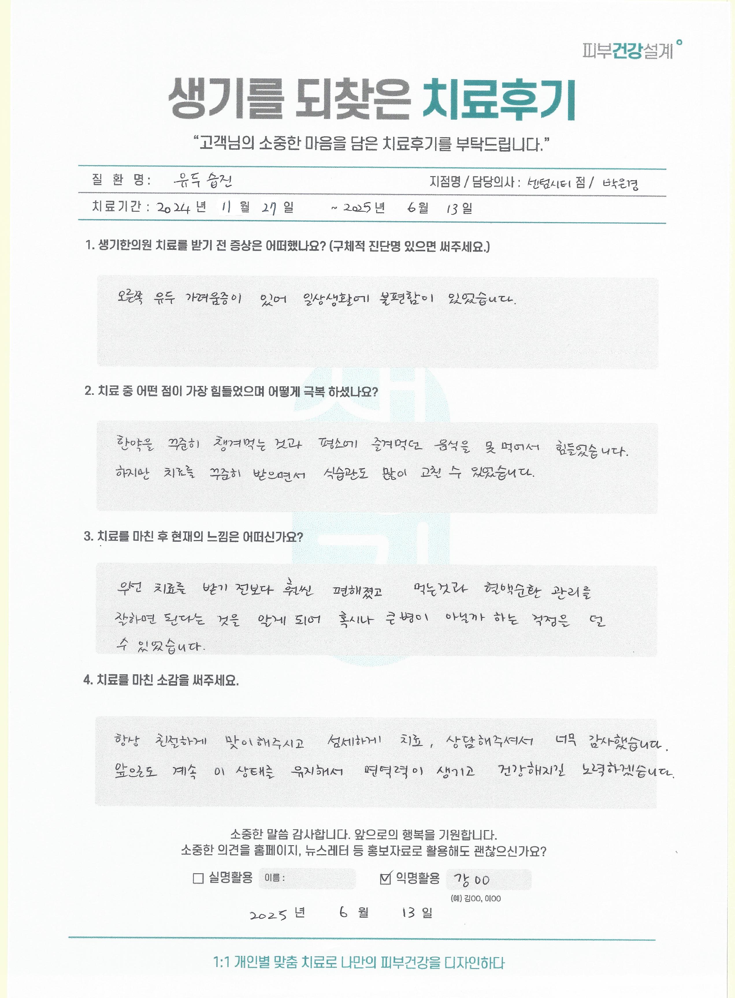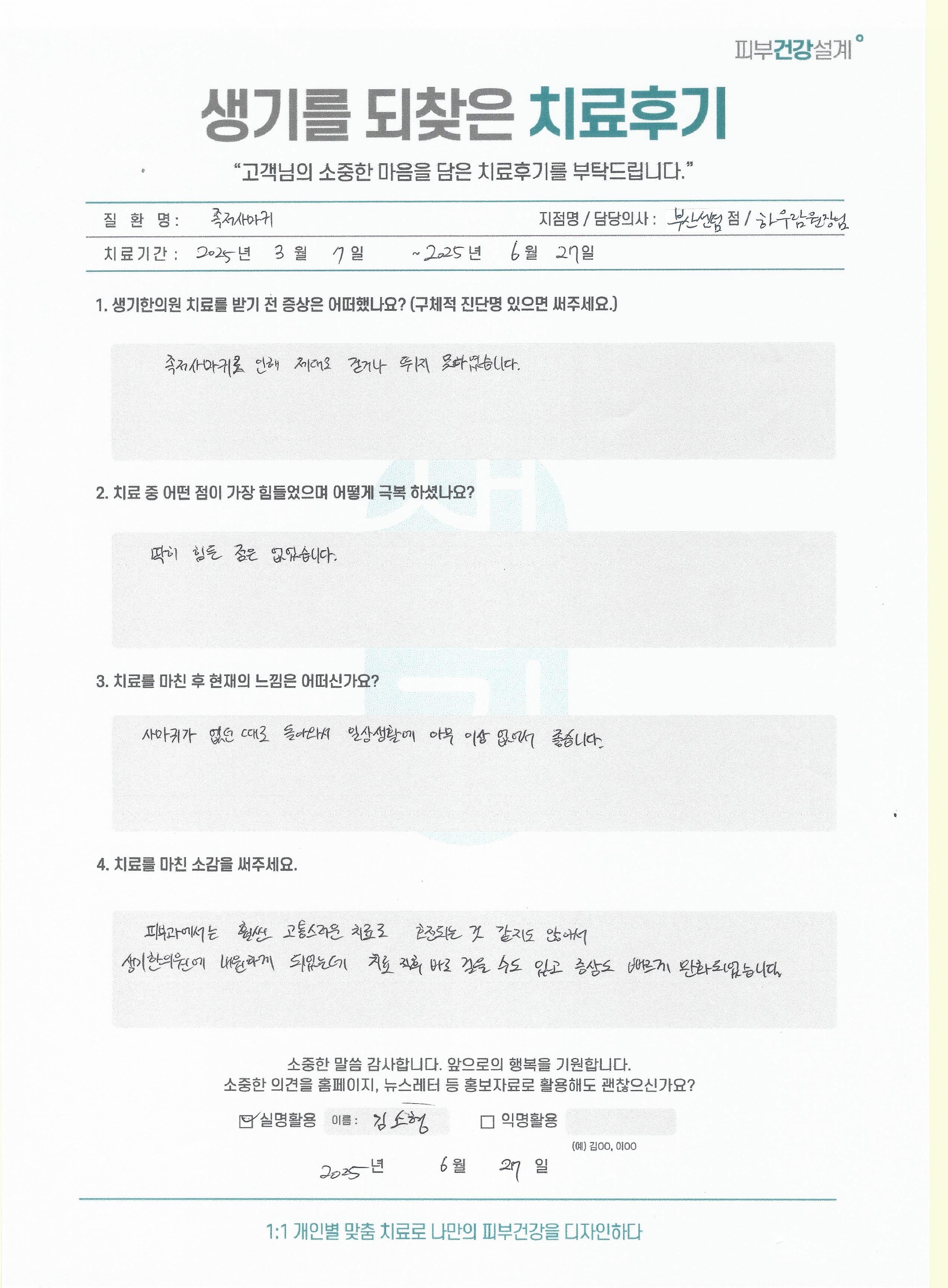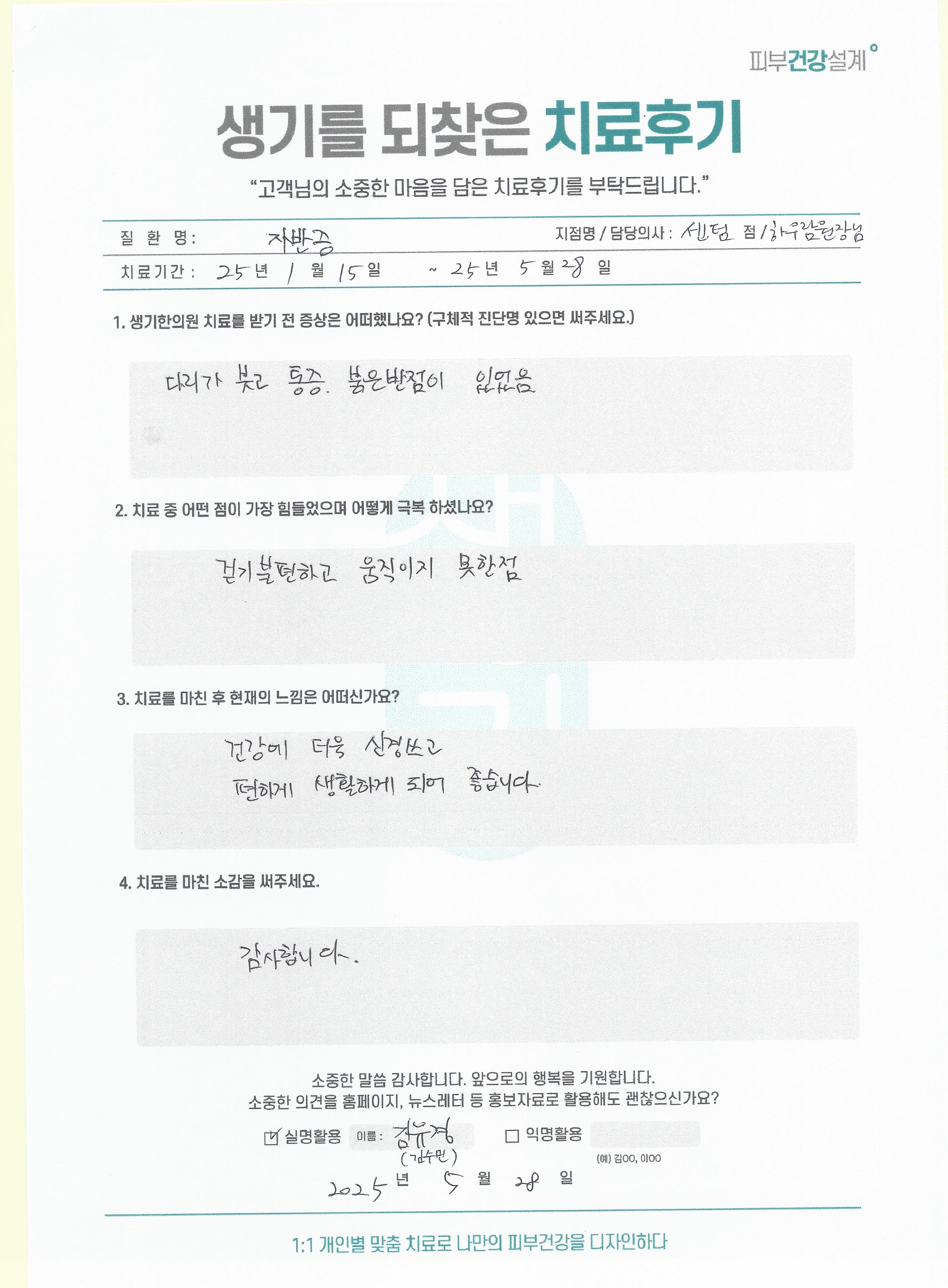 생기한의원과 함께하신 생생한 자필 및 영상 후기를 소개합니다.