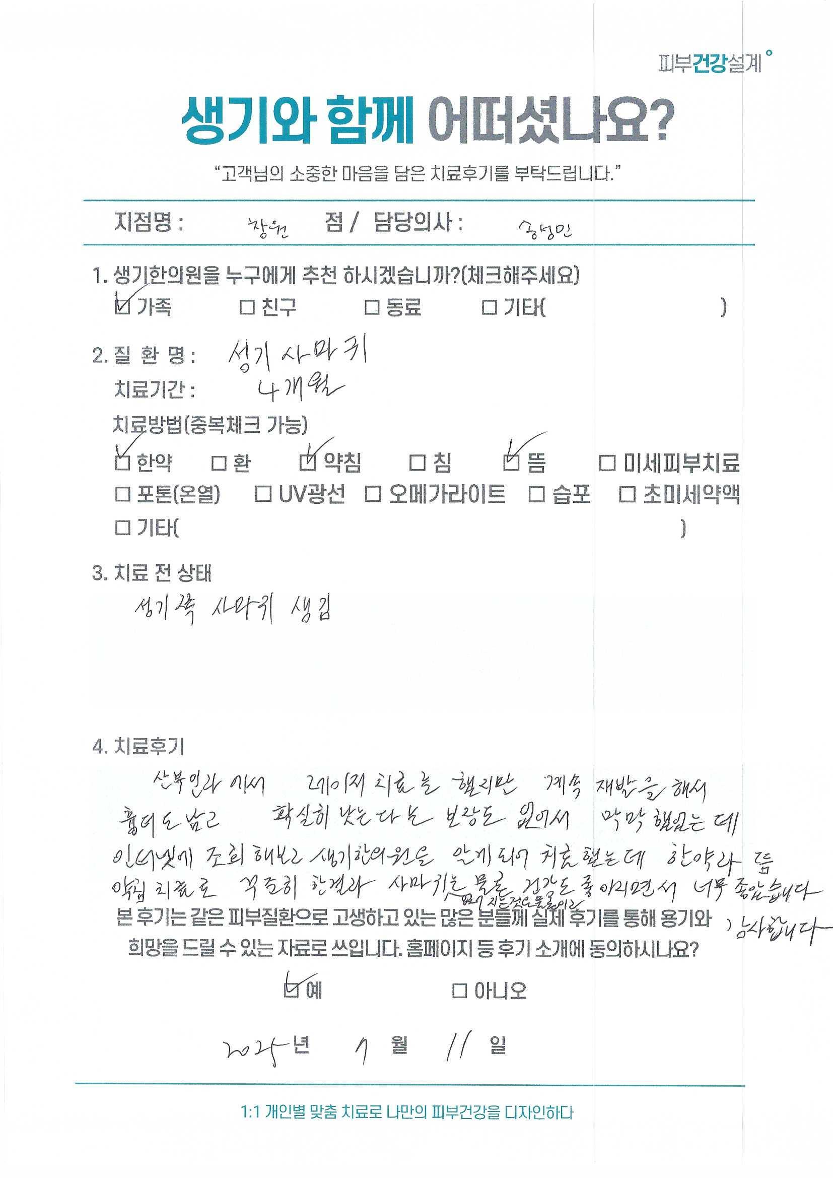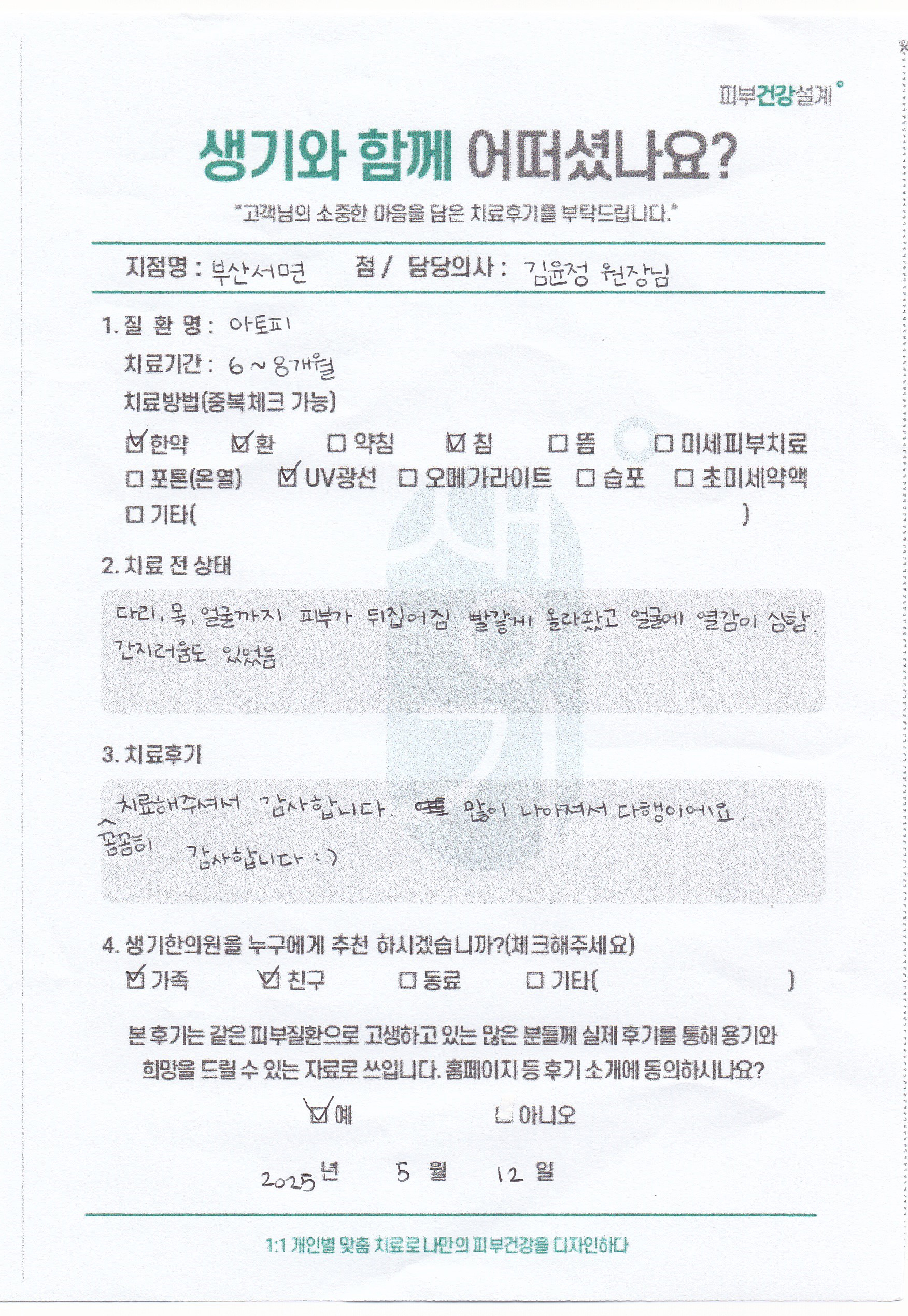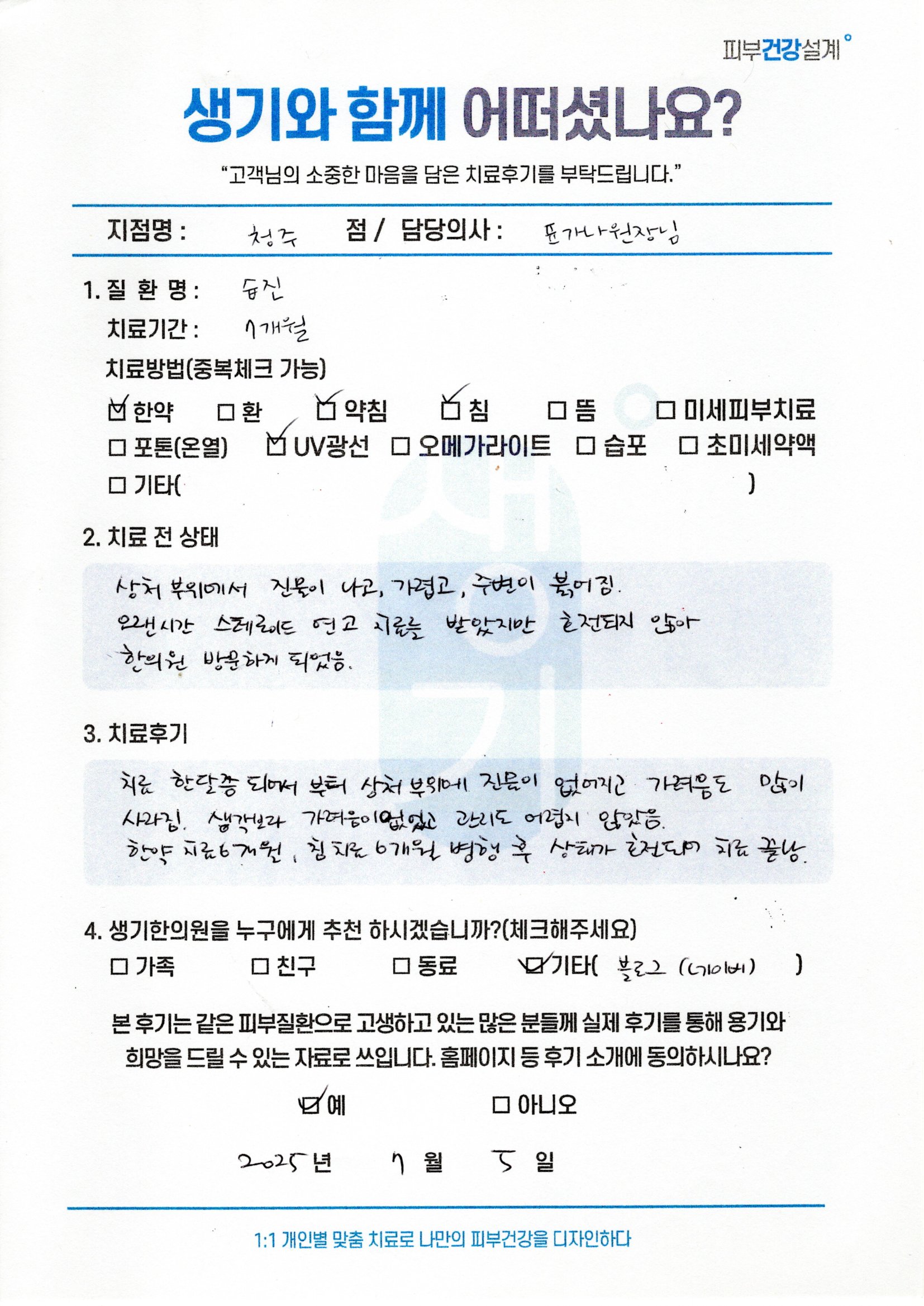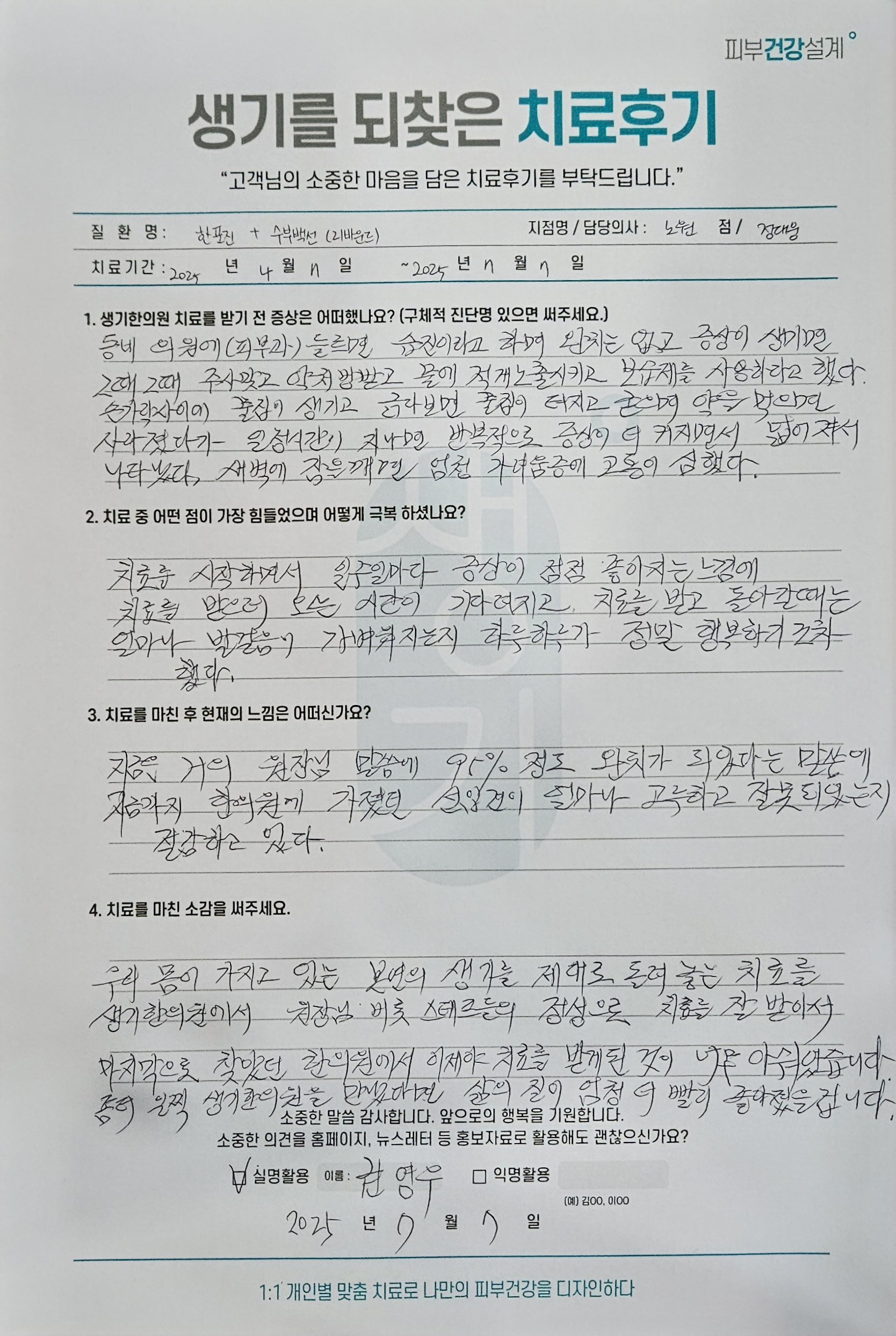 생기한의원과 함께하신 생생한 자필 및 영상 후기를 소개합니다.