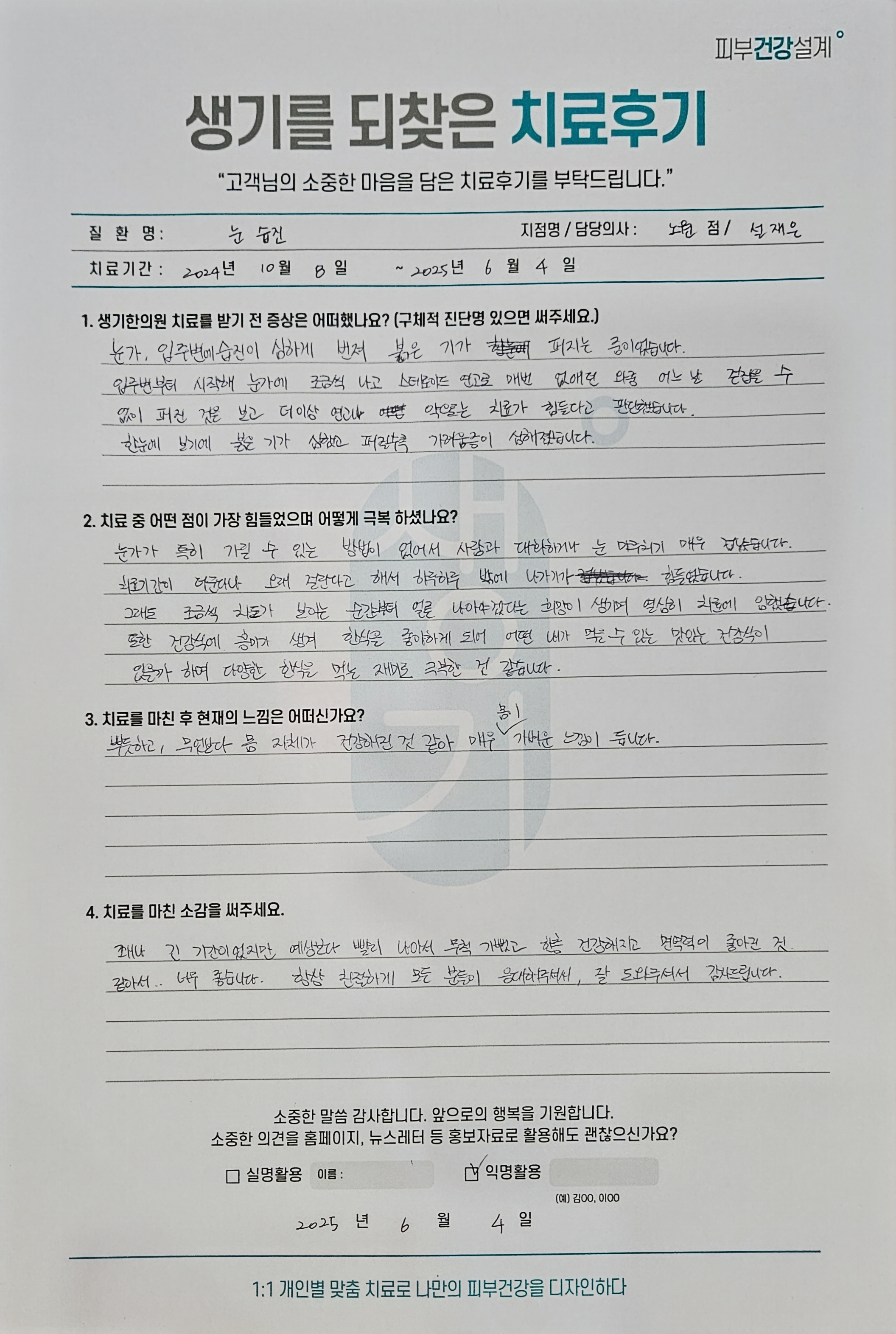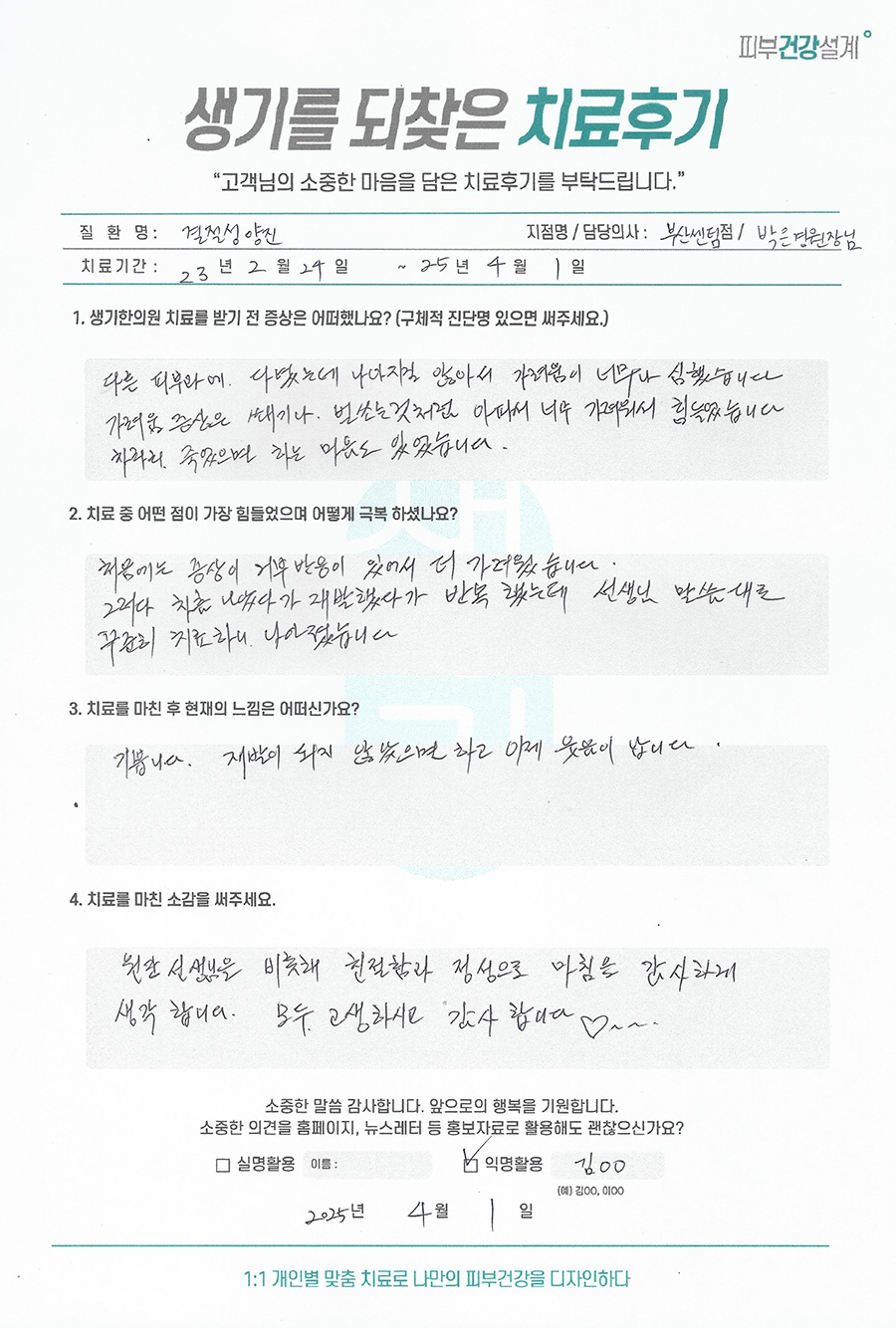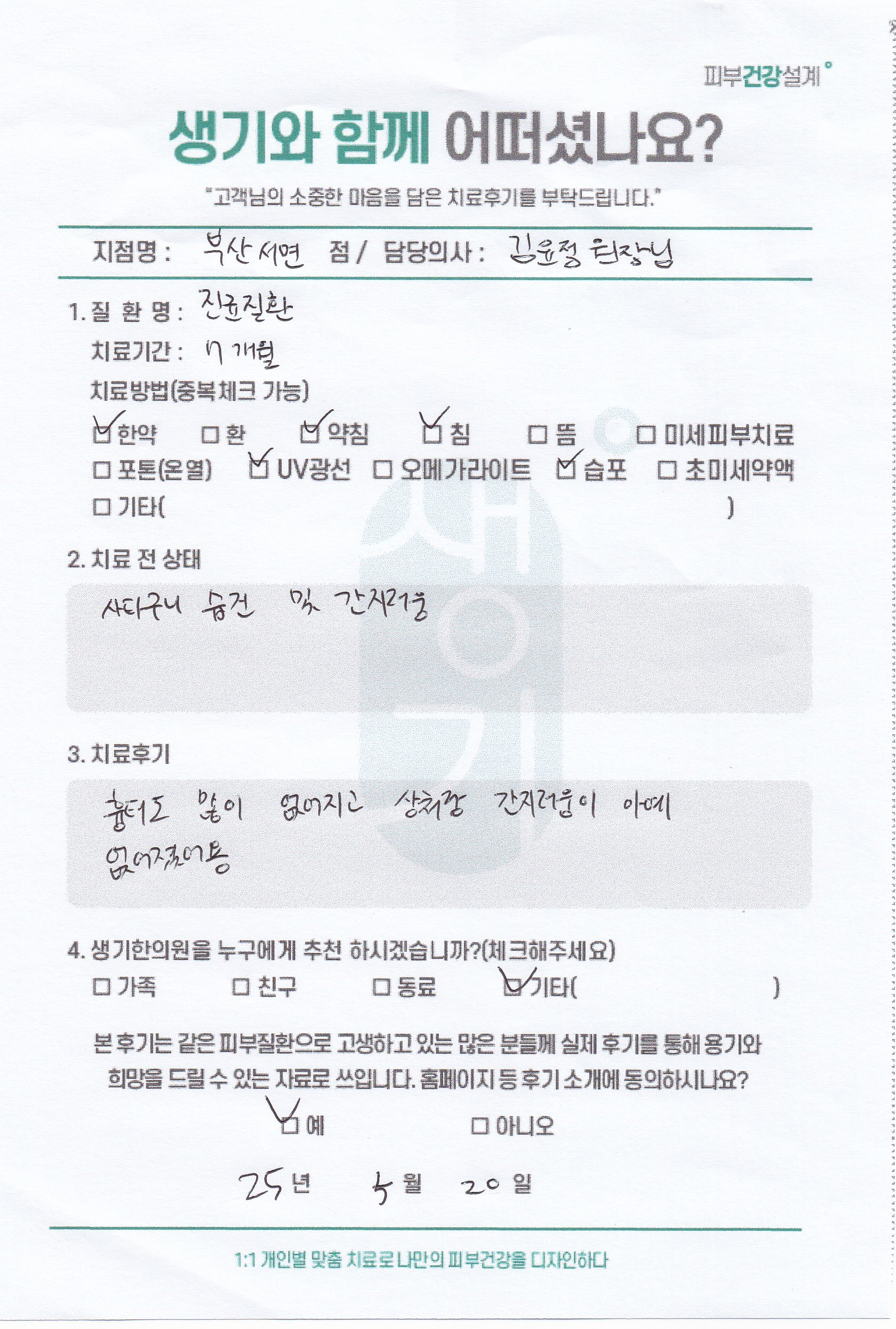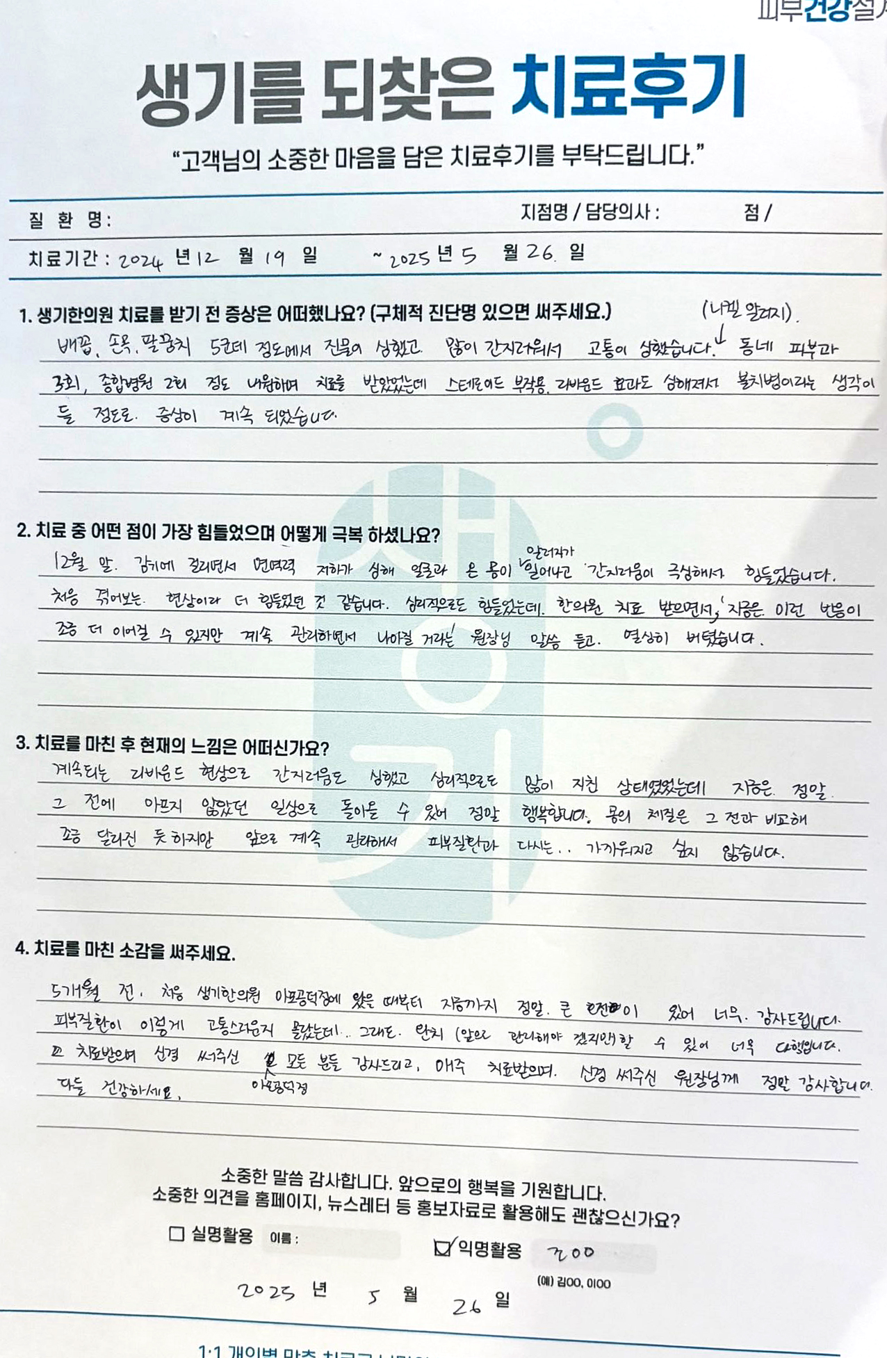 생기한의원과 함께하신 생생한 자필 및 영상 후기를 소개합니다.