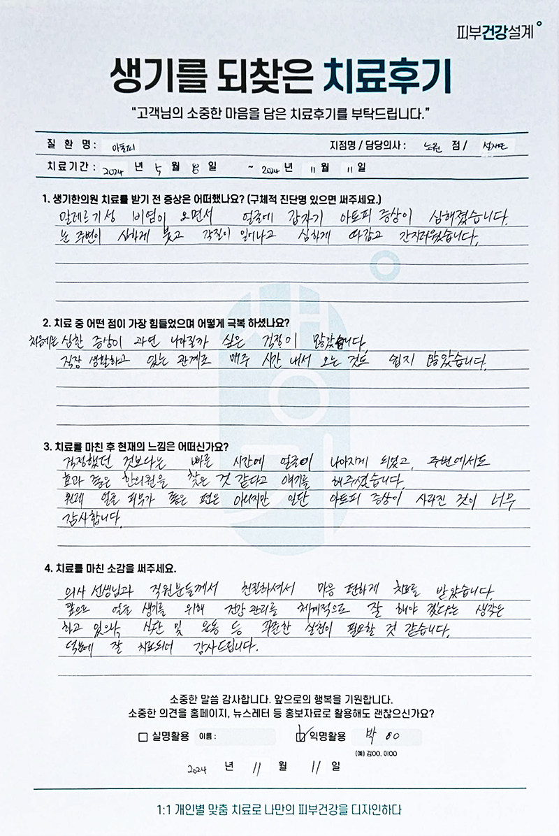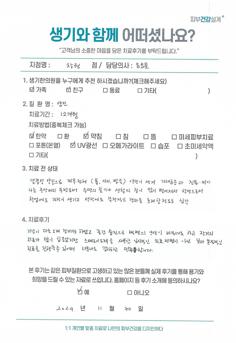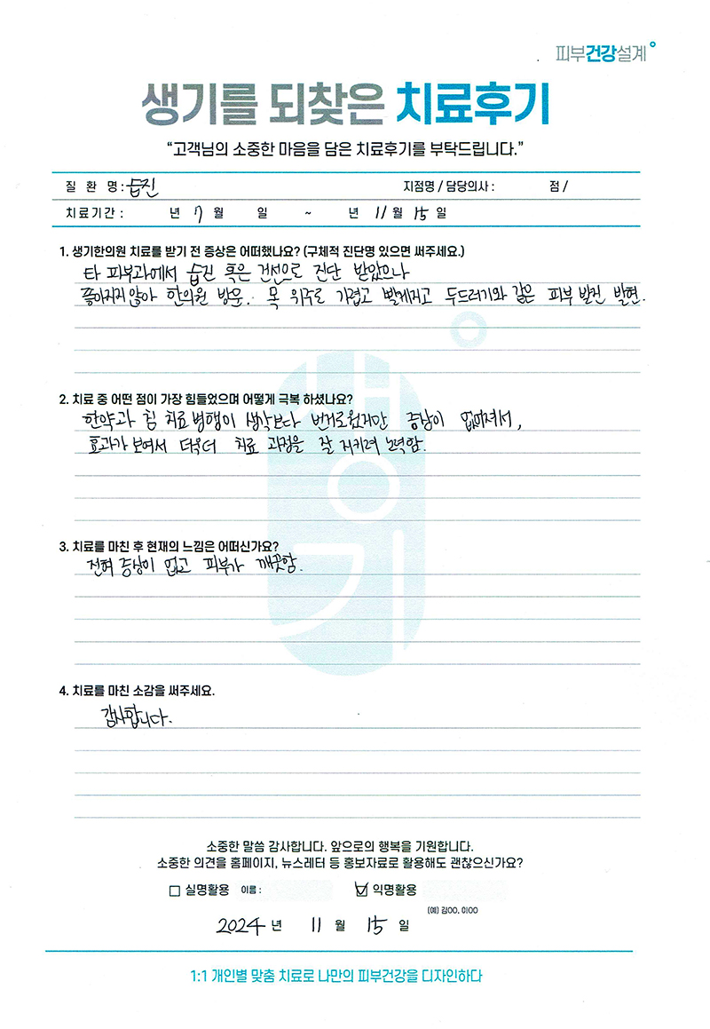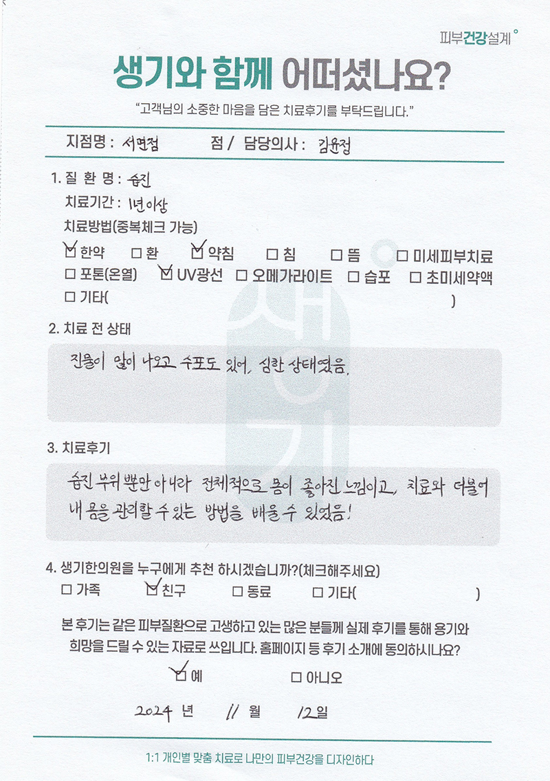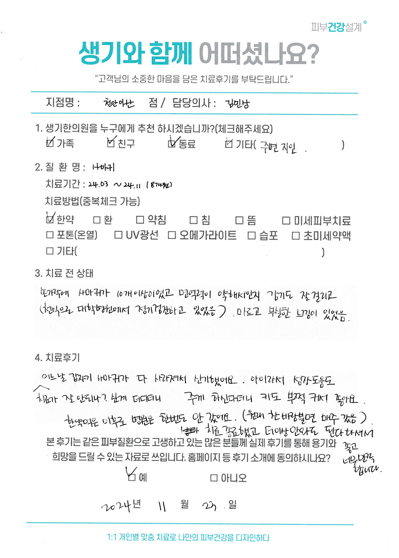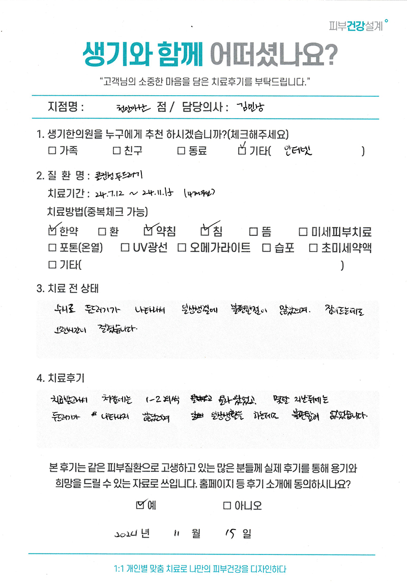 생기한의원과 함께하신 생생한 자필 및 영상 후기를 소개합니다.