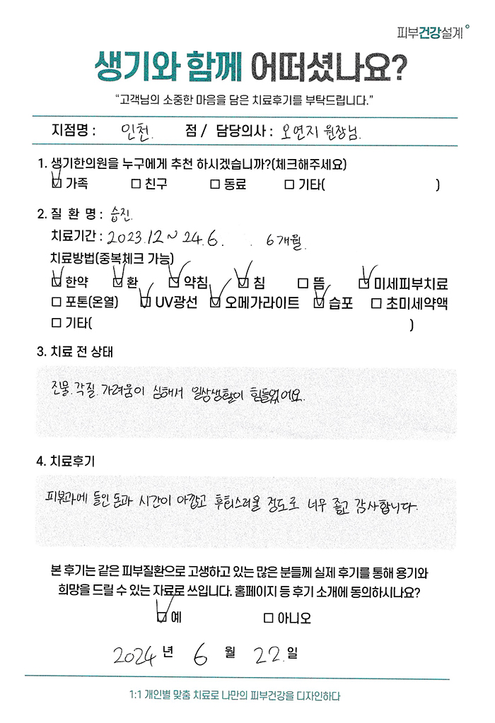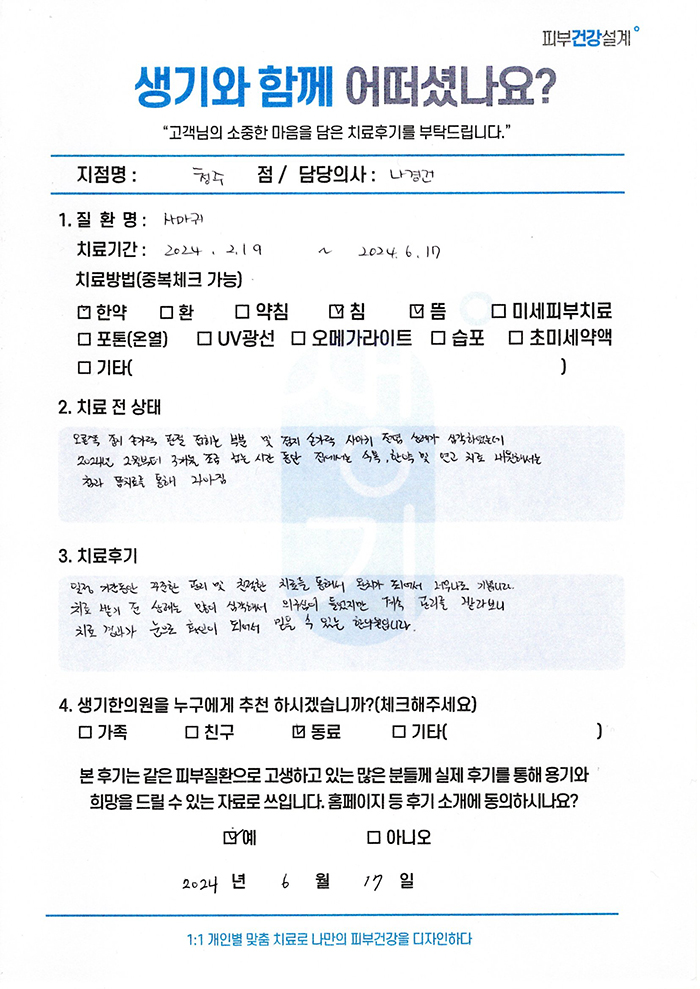 생기한의원과 함께하신 생생한 자필 및 영상 후기를 소개합니다.