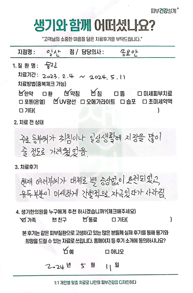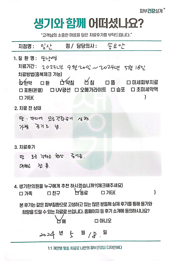 생기한의원과 함께하신 생생한 자필 및 영상 후기를 소개합니다.