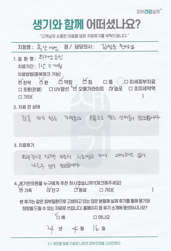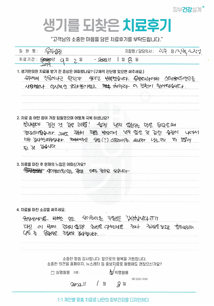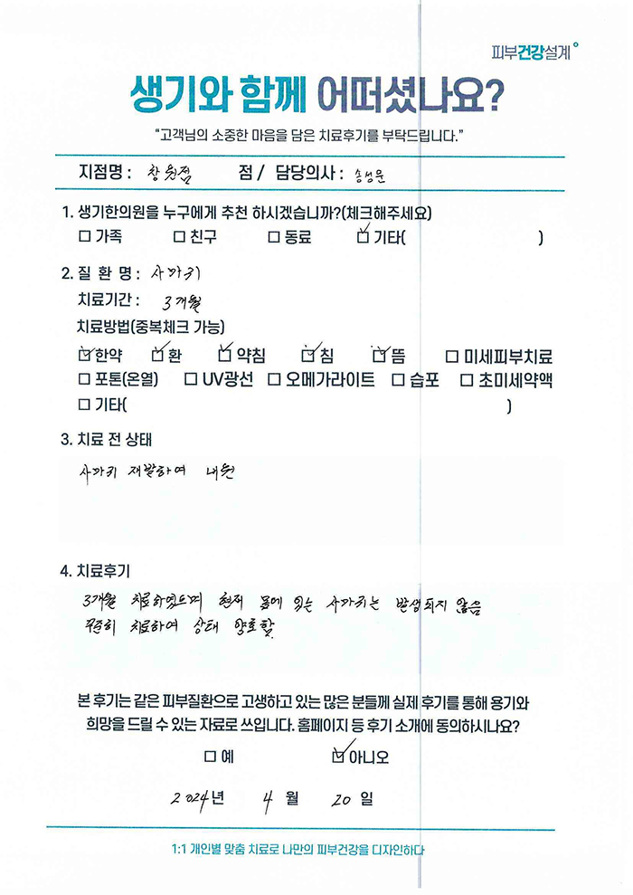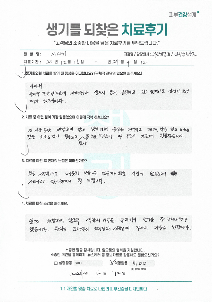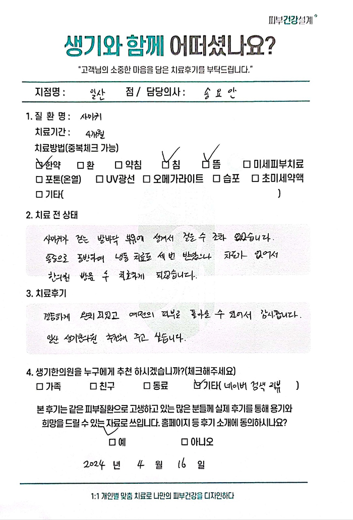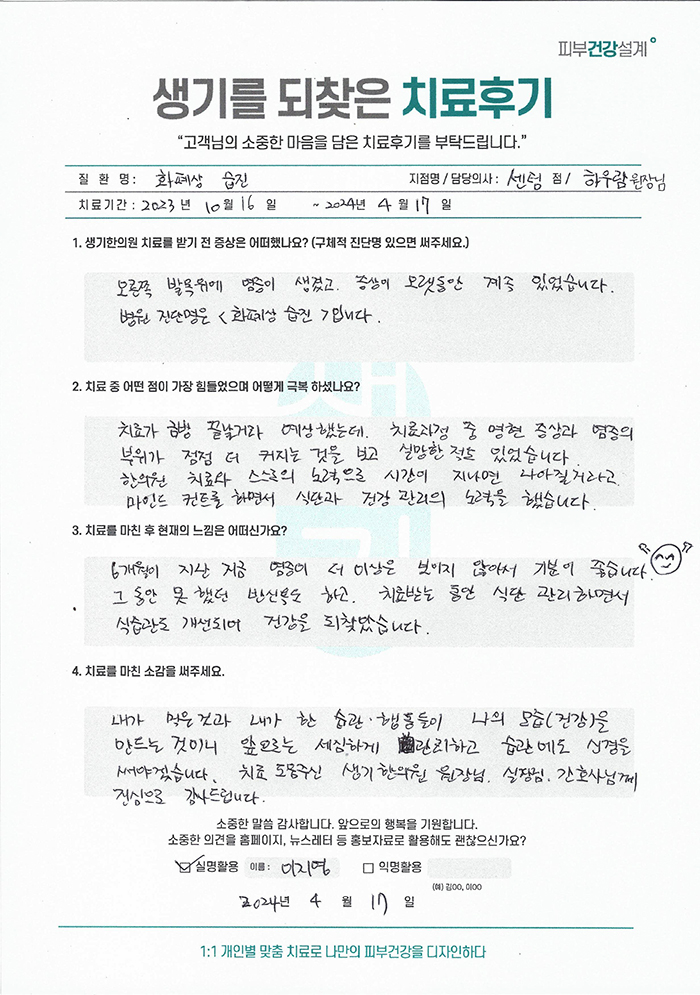 생기한의원과 함께하신 생생한 자필 및 영상 후기를 소개합니다.