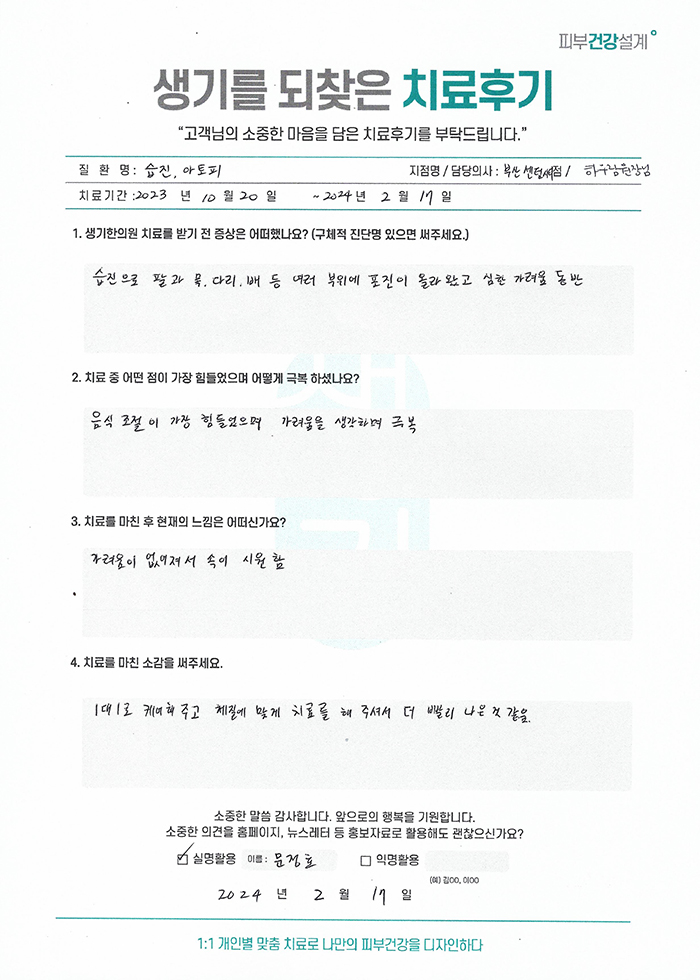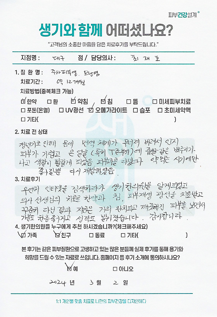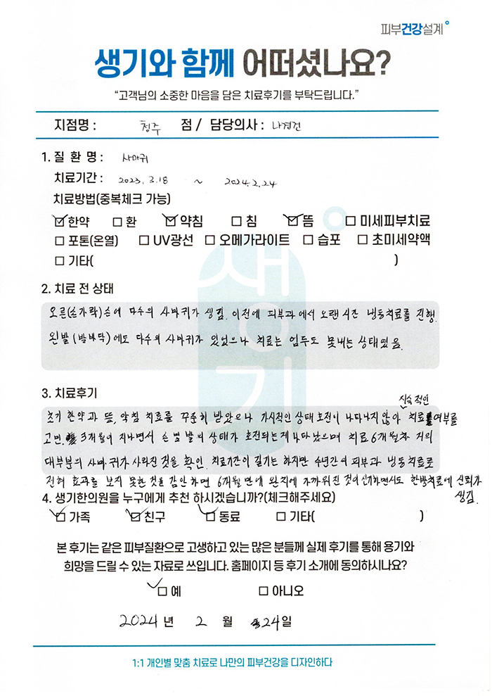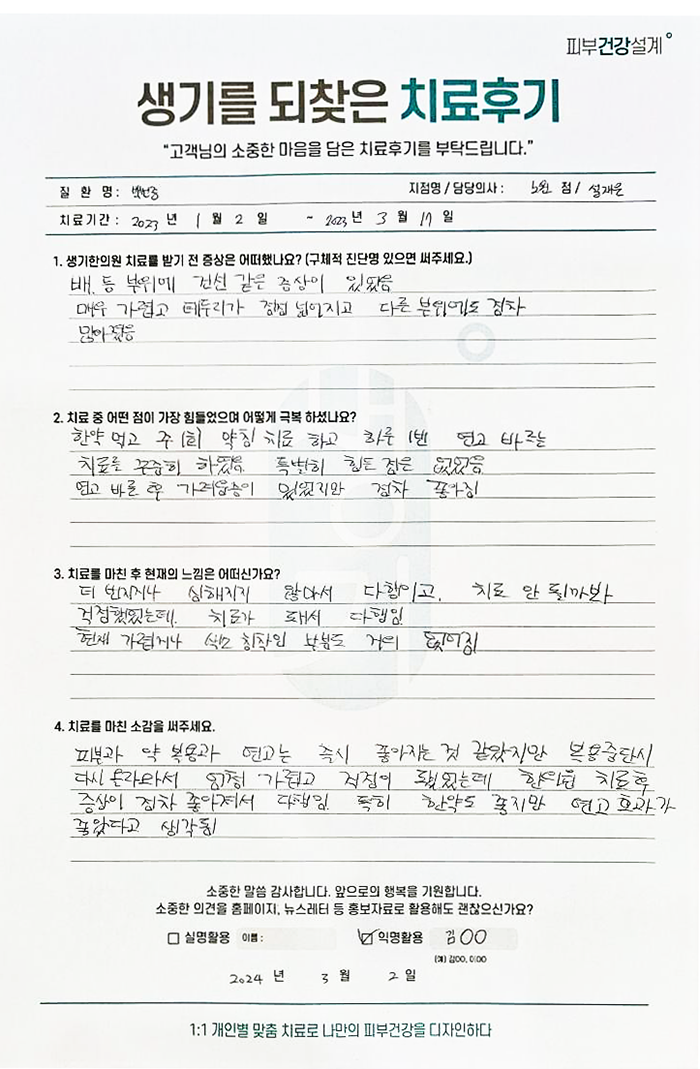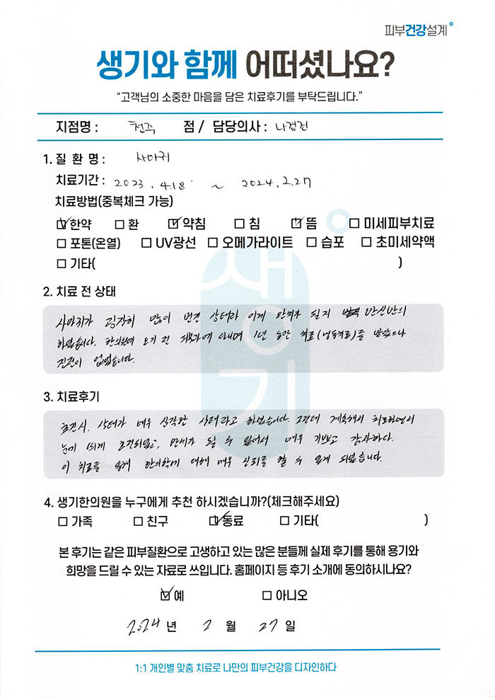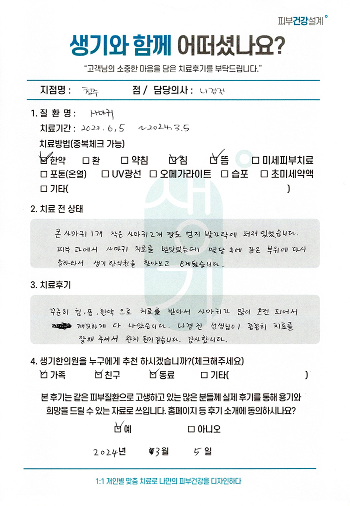 생기한의원과 함께하신 생생한 자필 및 영상 후기를 소개합니다.