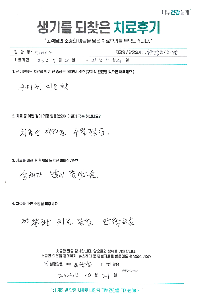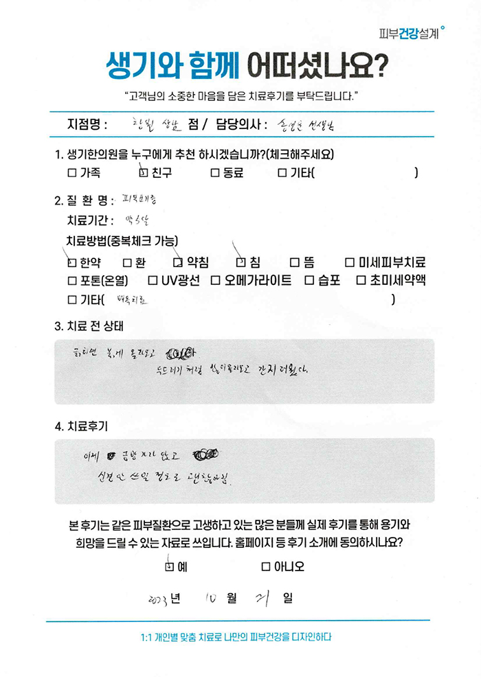 생기한의원과 함께하신 생생한 자필 및 영상 후기를 소개합니다.