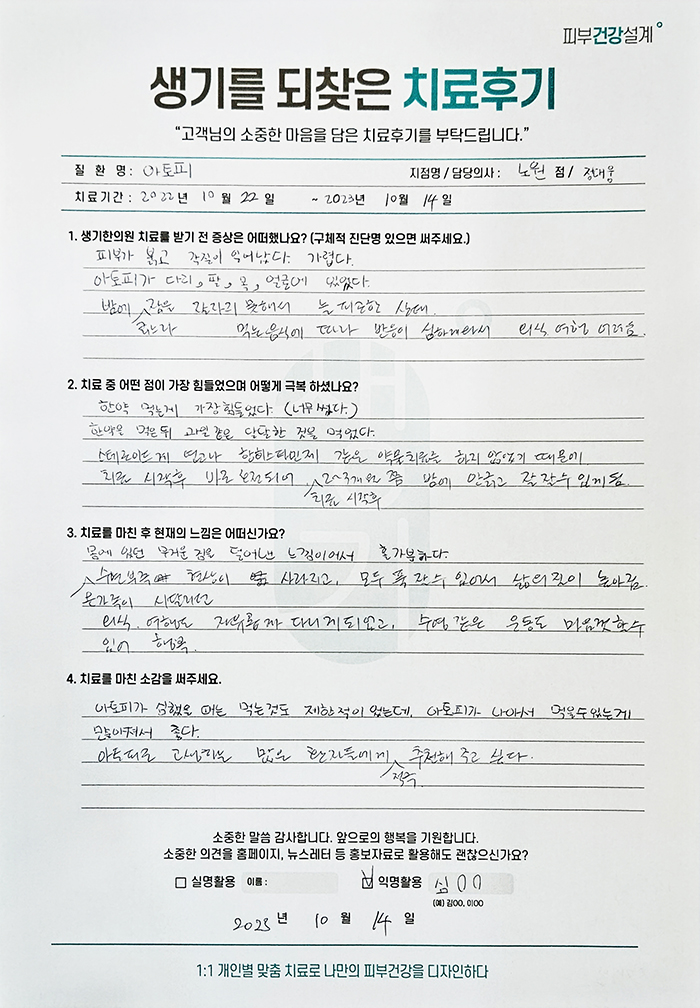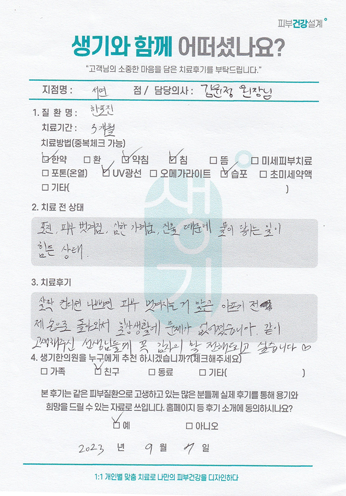 생기한의원과 함께하신 생생한 자필 및 영상 후기를 소개합니다.