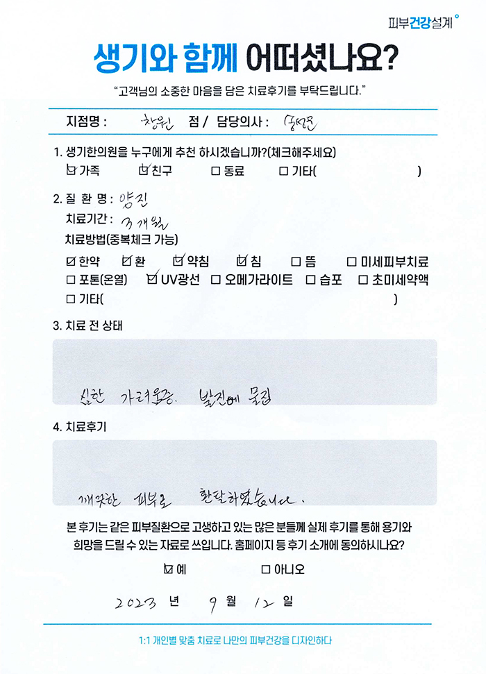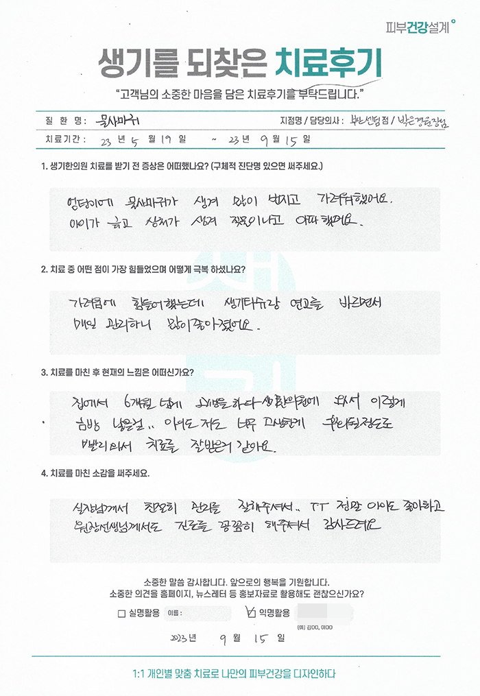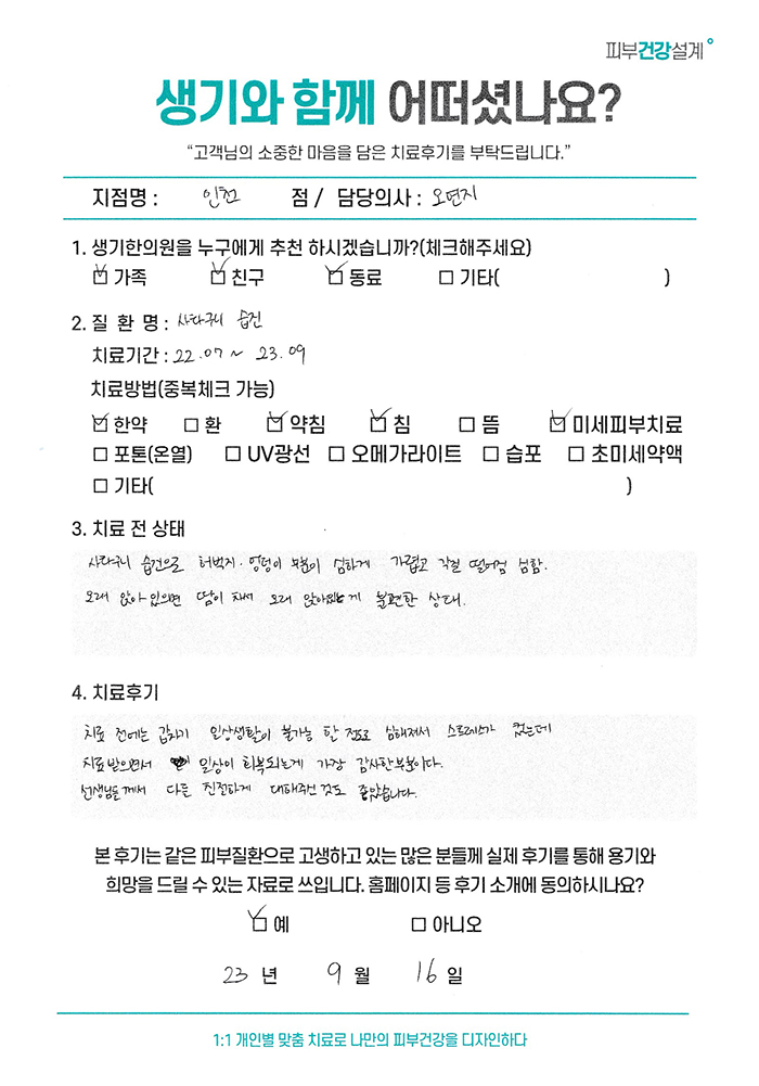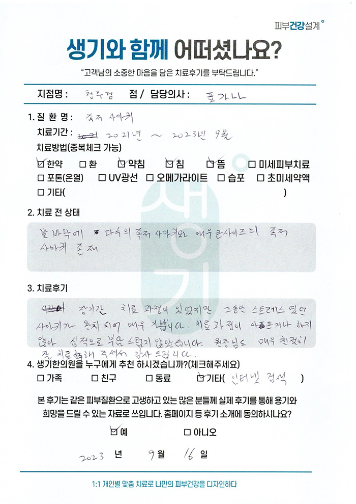 생기한의원과 함께하신 생생한 자필 및 영상 후기를 소개합니다.