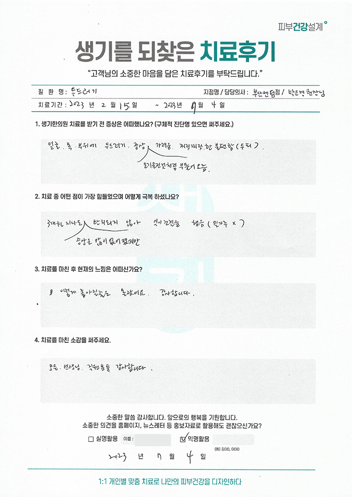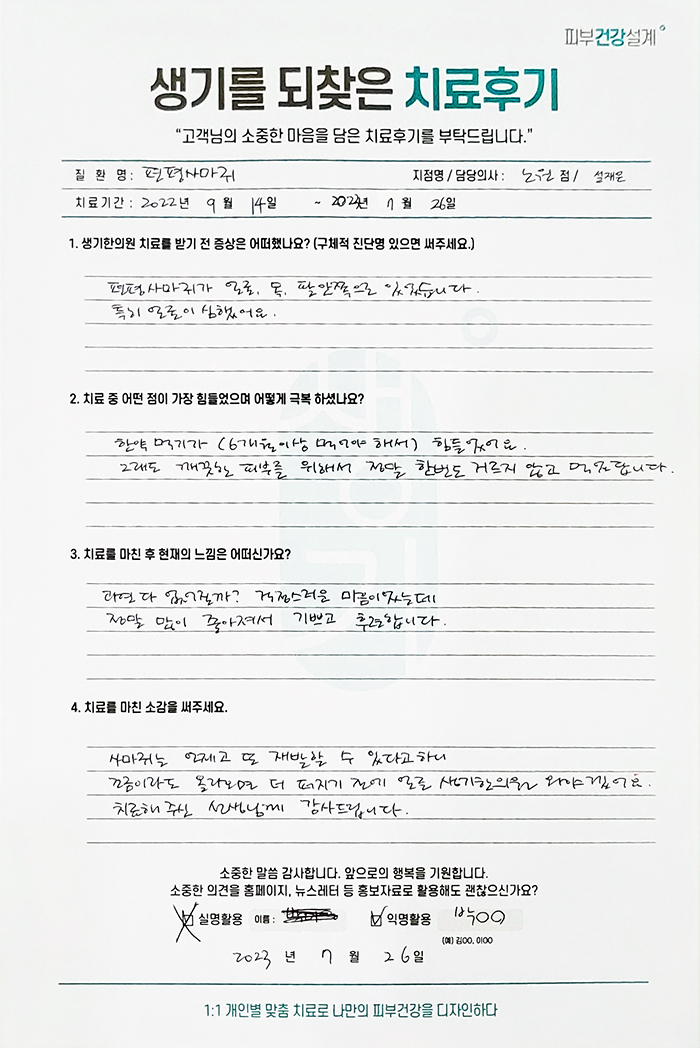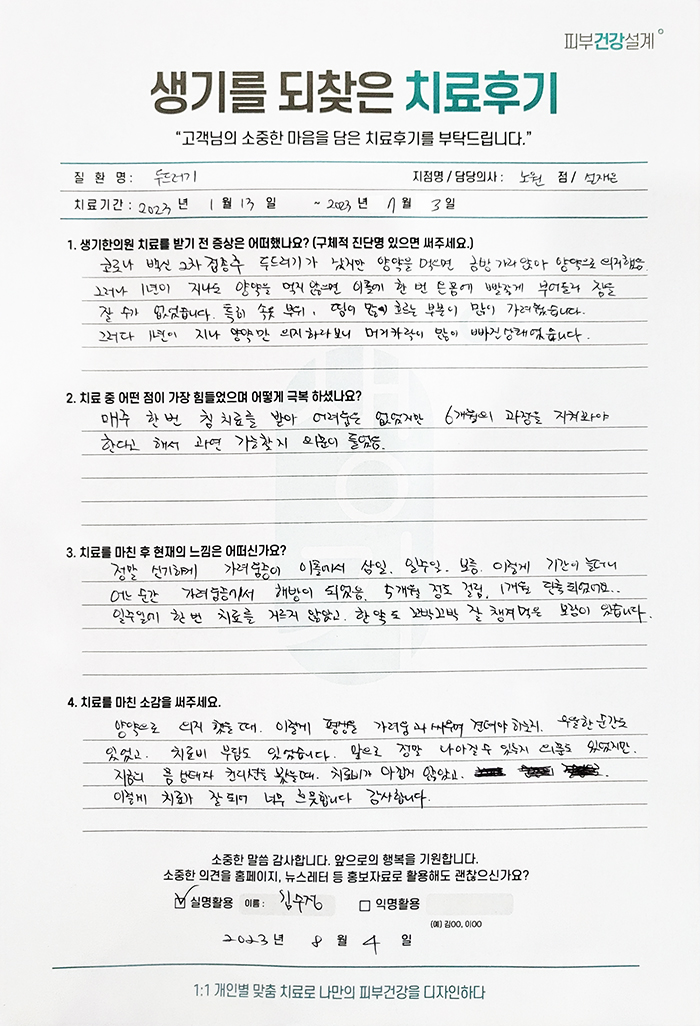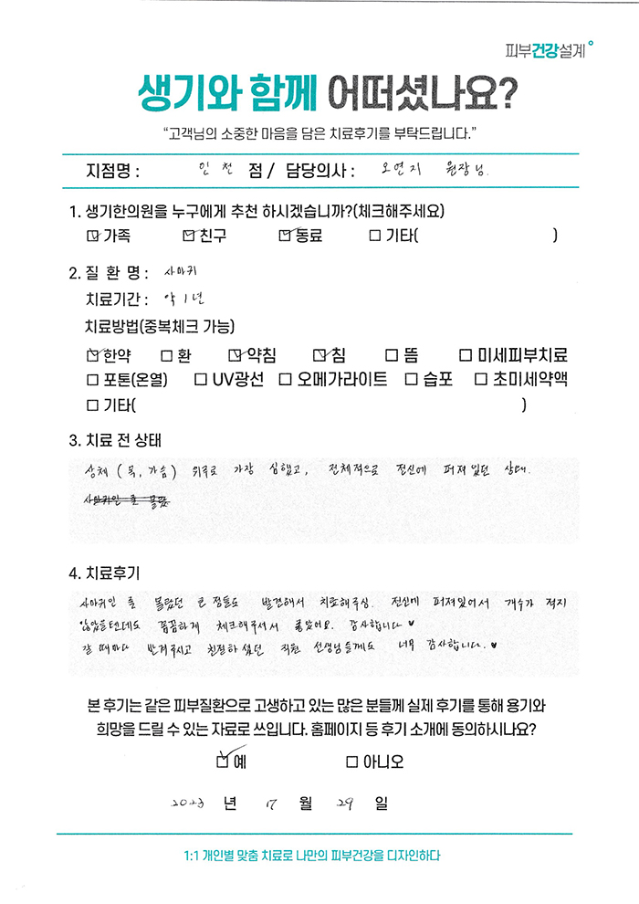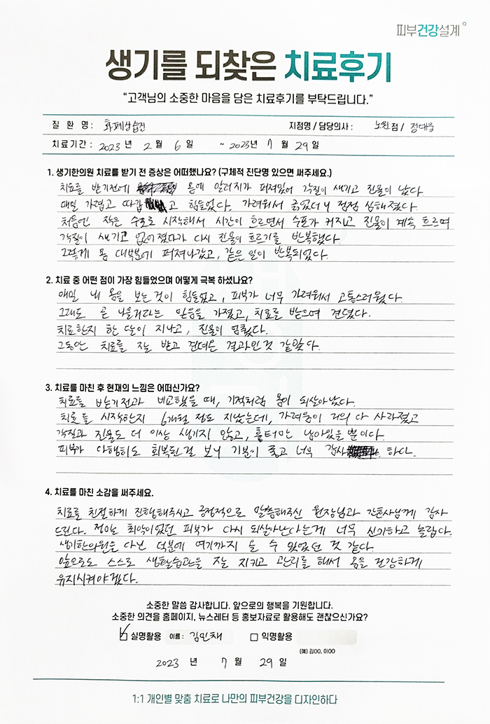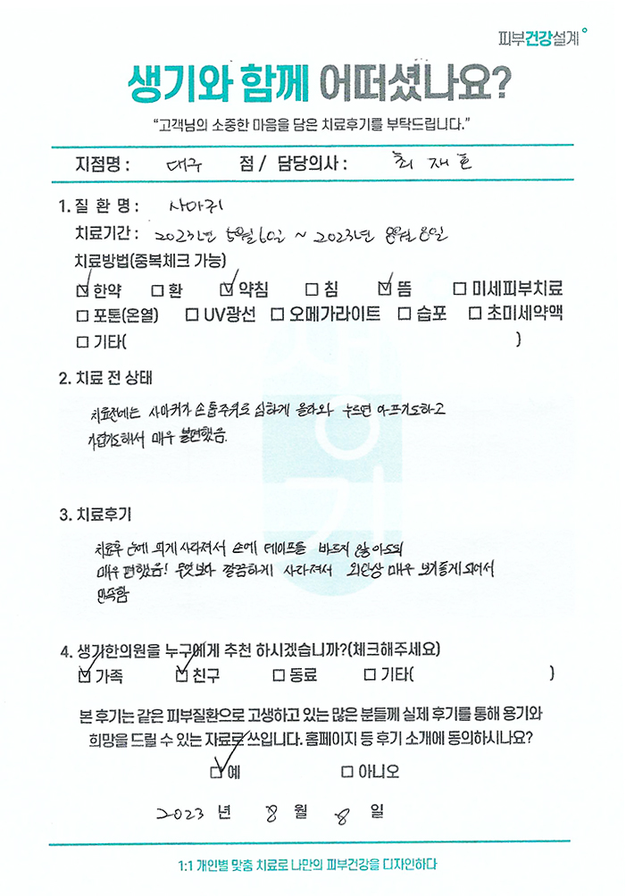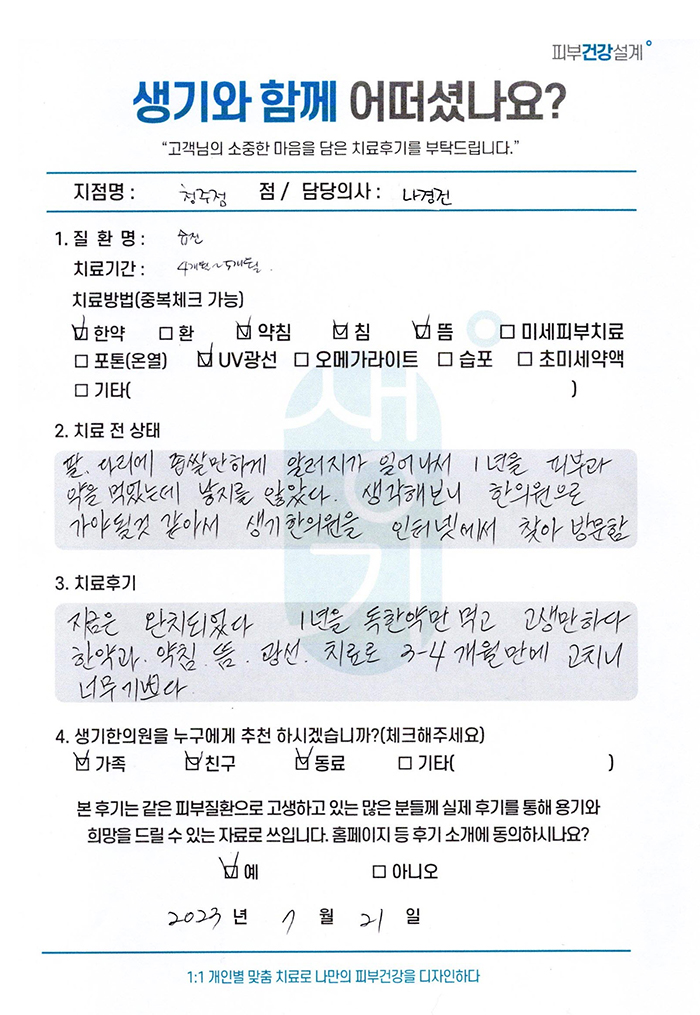 생기한의원과 함께하신 생생한 자필 및 영상 후기를 소개합니다.