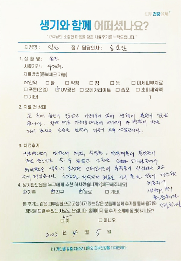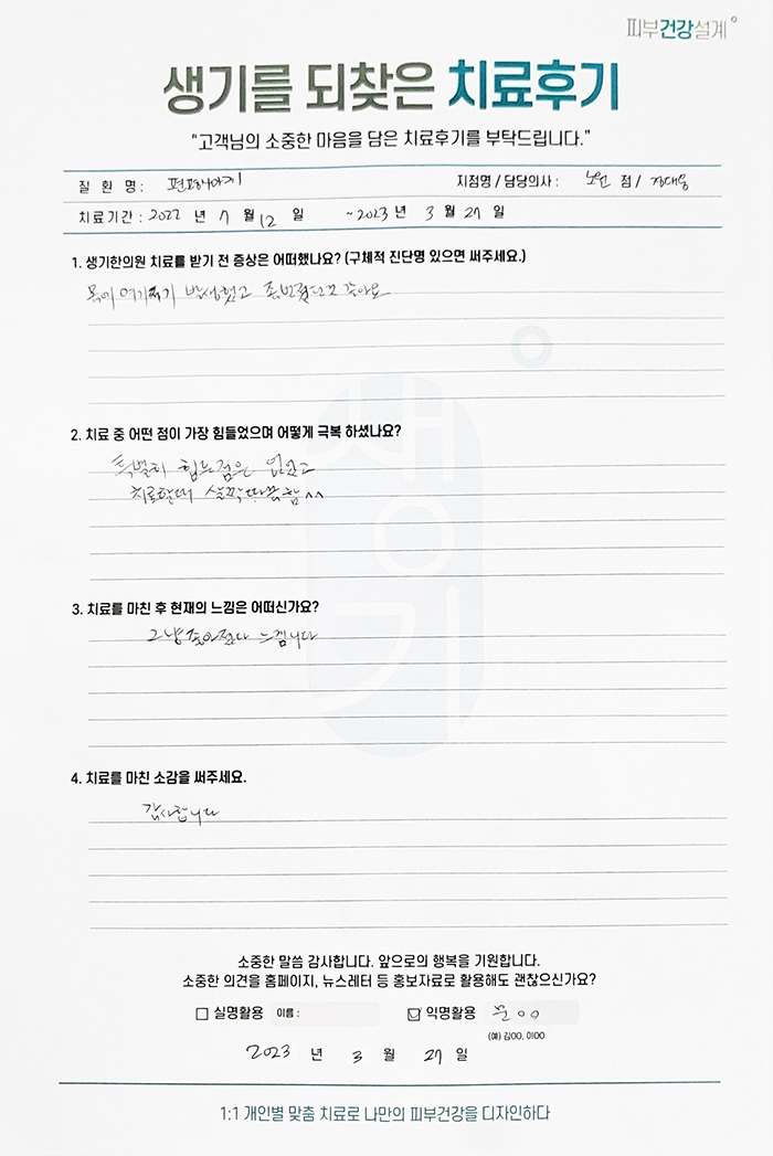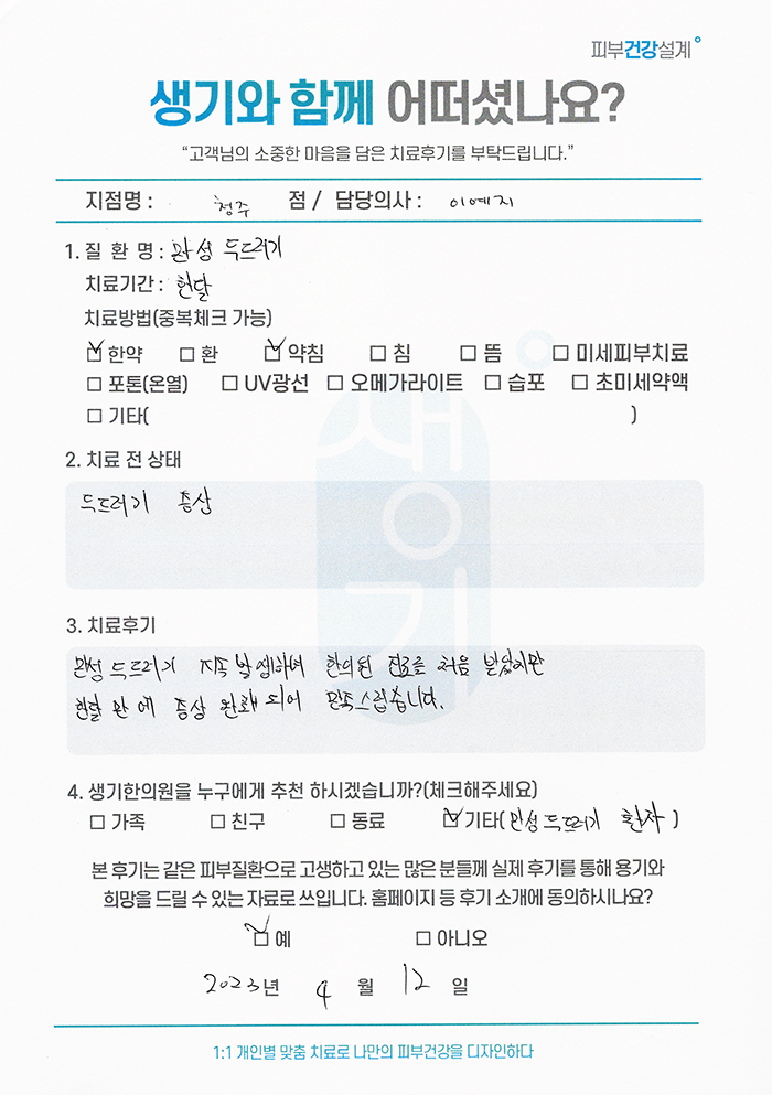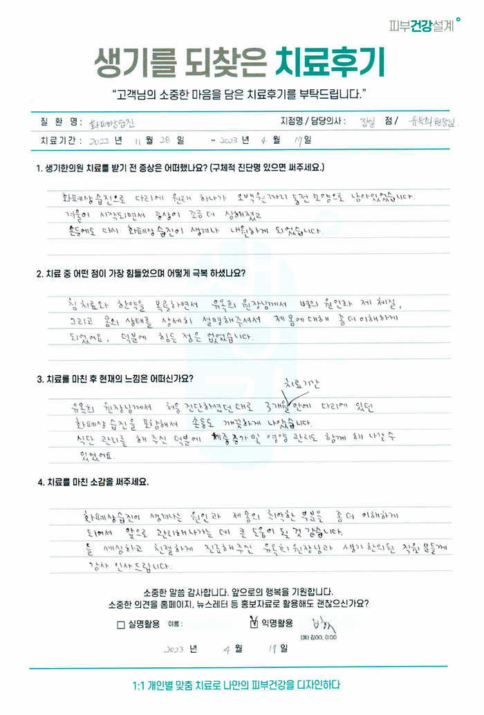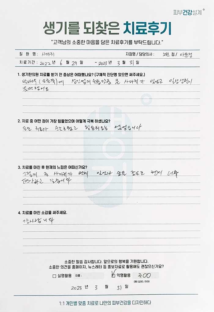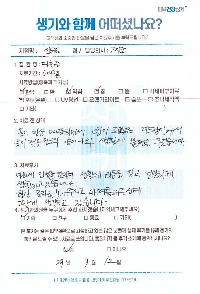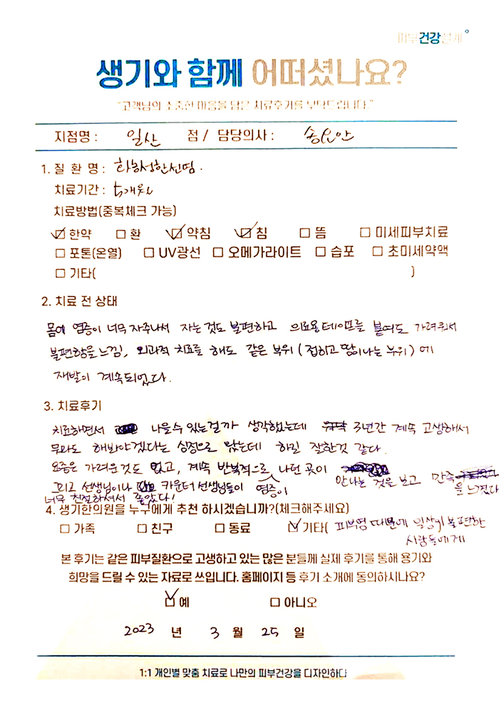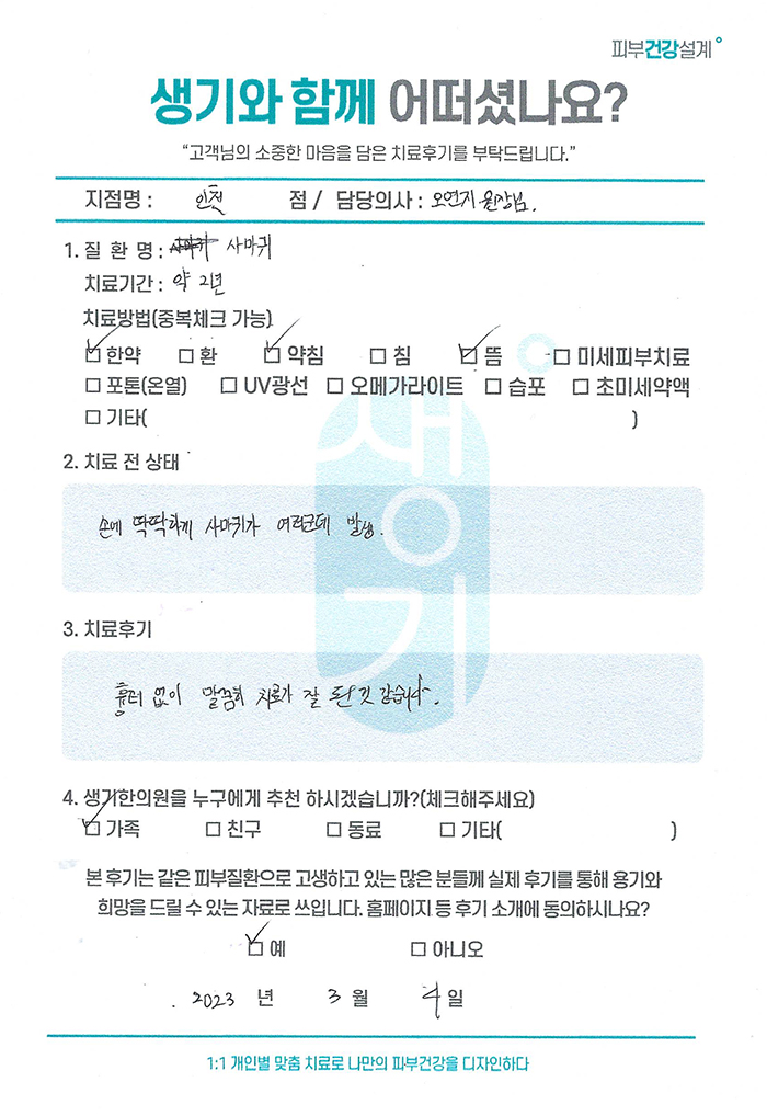 생기한의원과 함께하신 생생한 자필 및 영상 후기를 소개합니다.