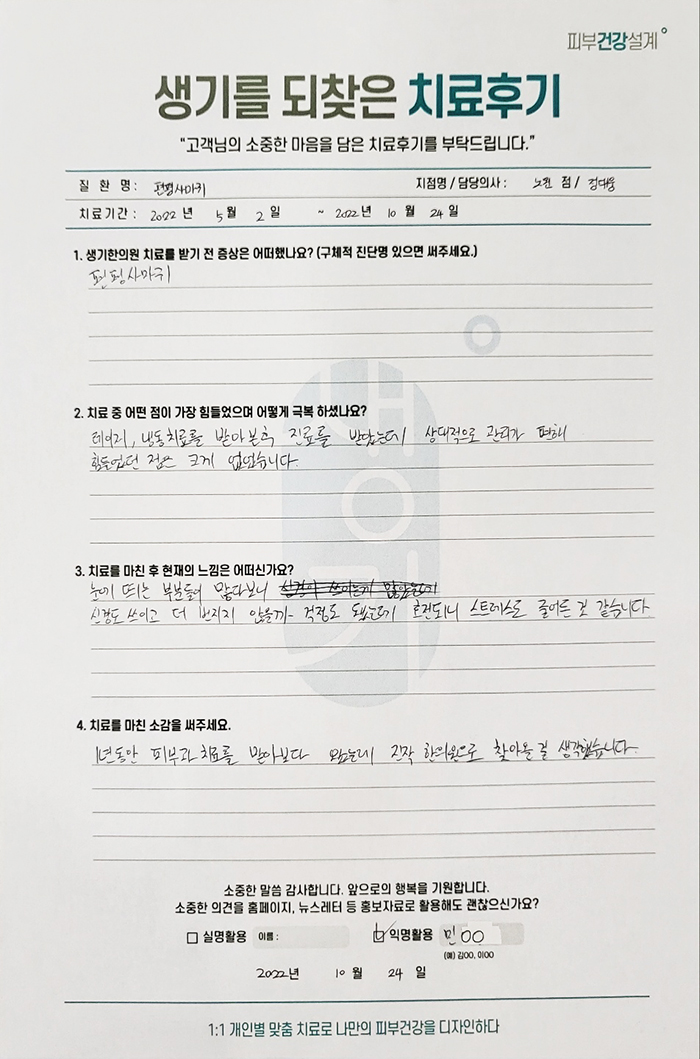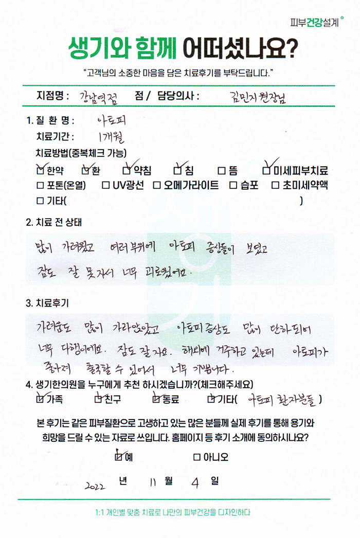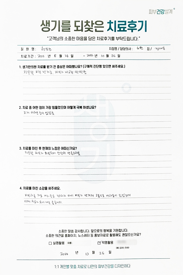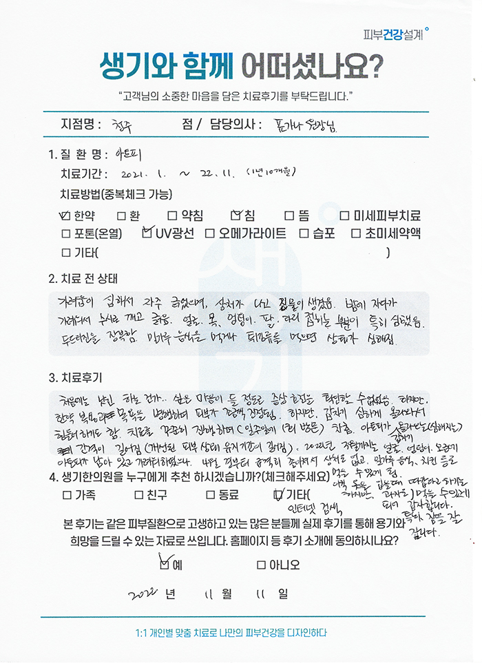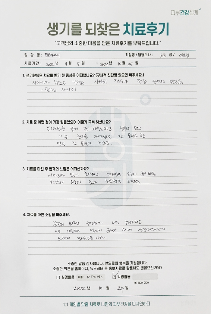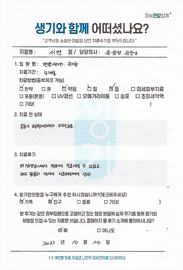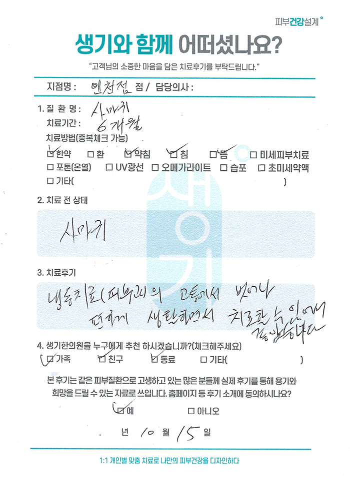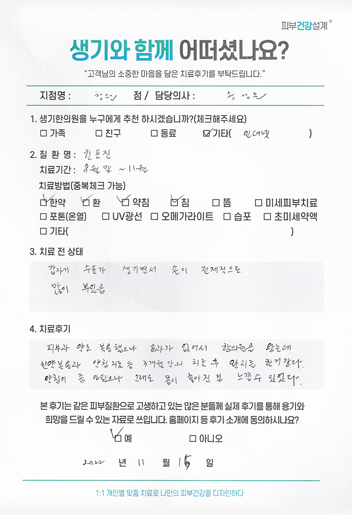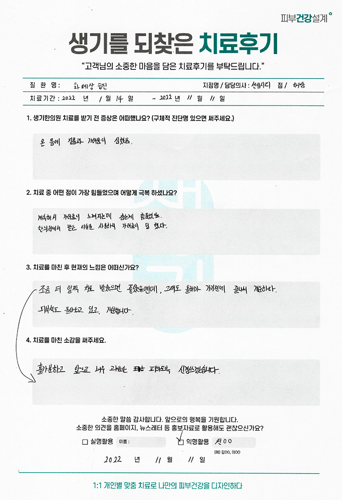 생기한의원과 함께하신 생생한 자필 및 영상 후기를 소개합니다.