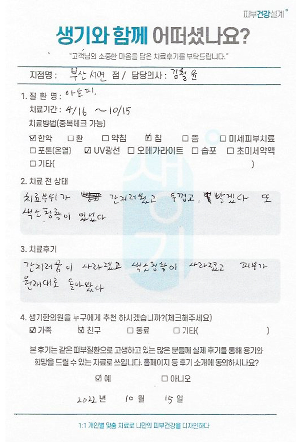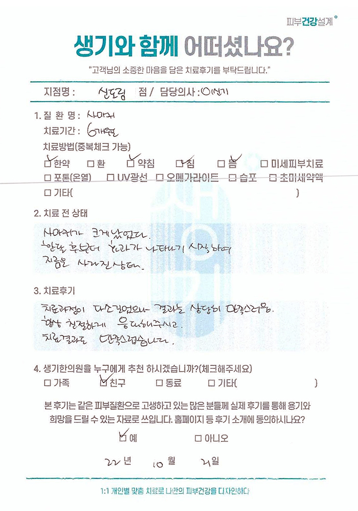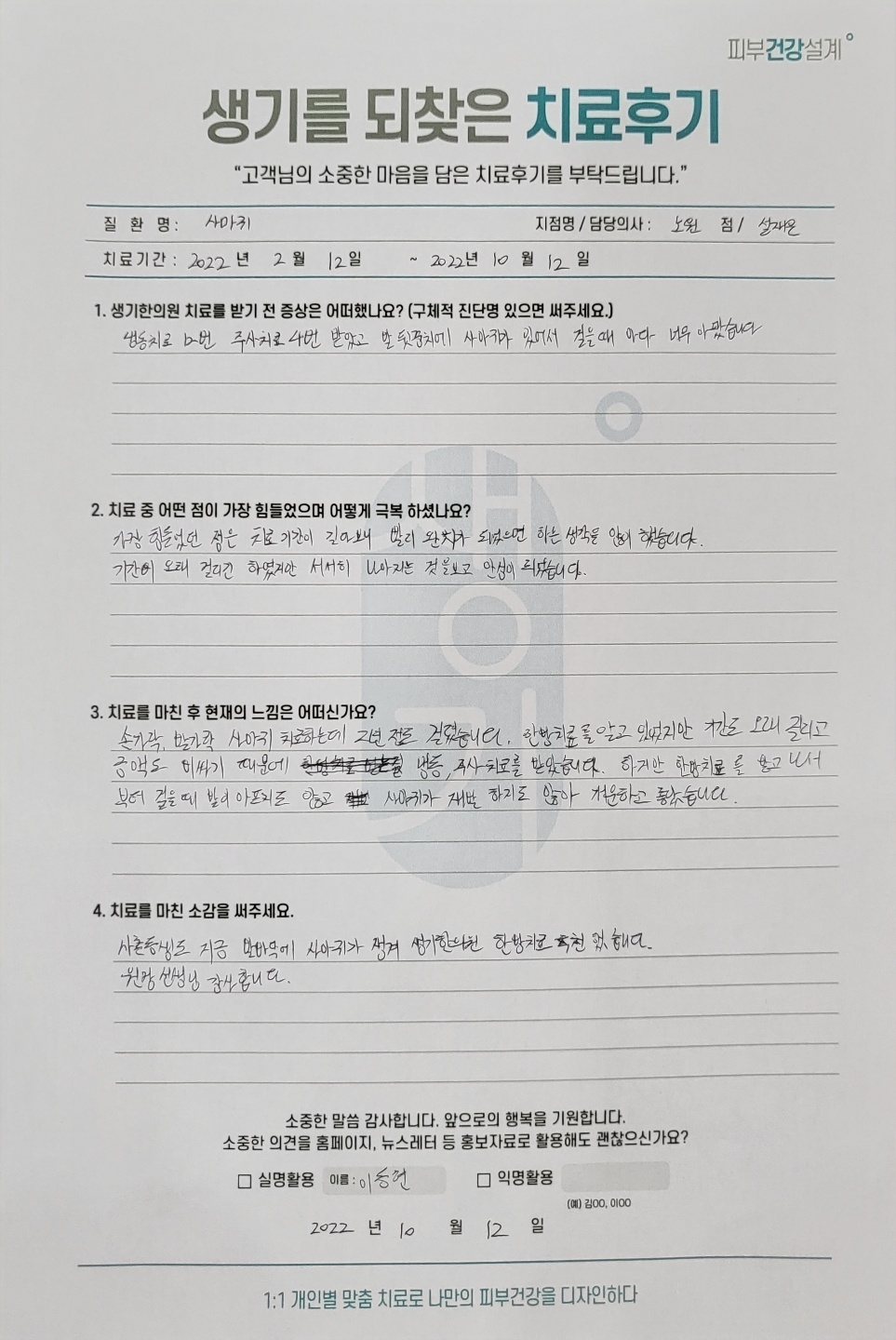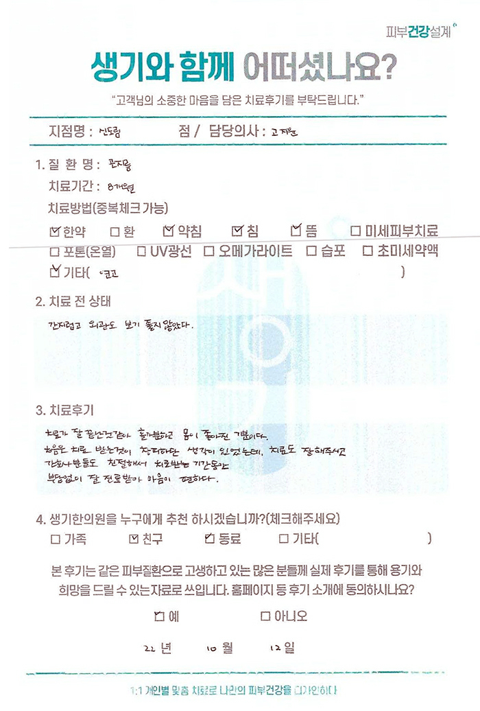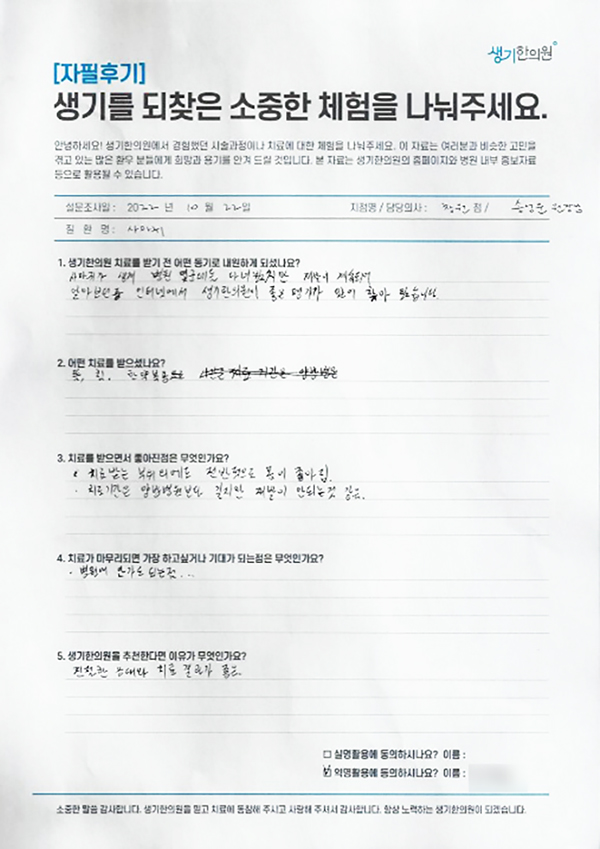 생기한의원과 함께하신 생생한 자필 및 영상 후기를 소개합니다.