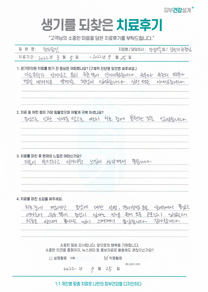 생기한의원과 함께하신 생생한 자필 및 영상 후기를 소개합니다.