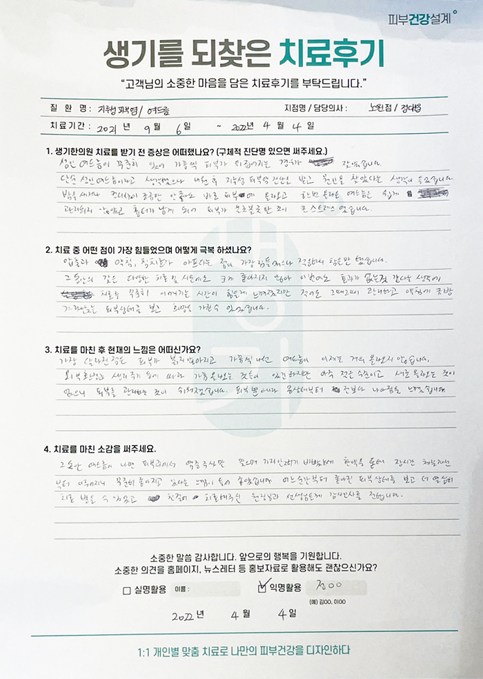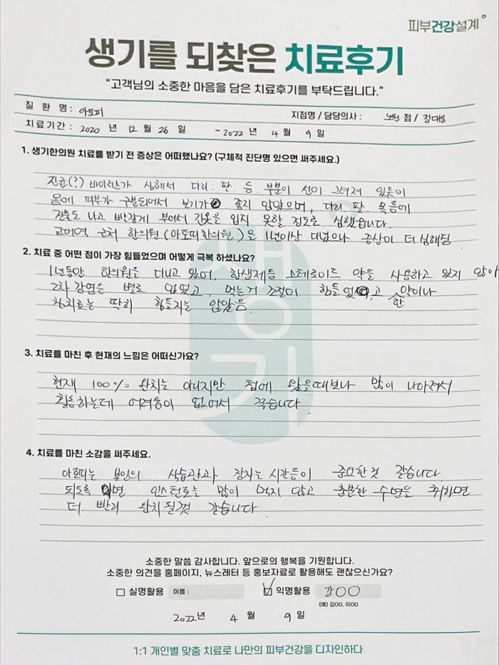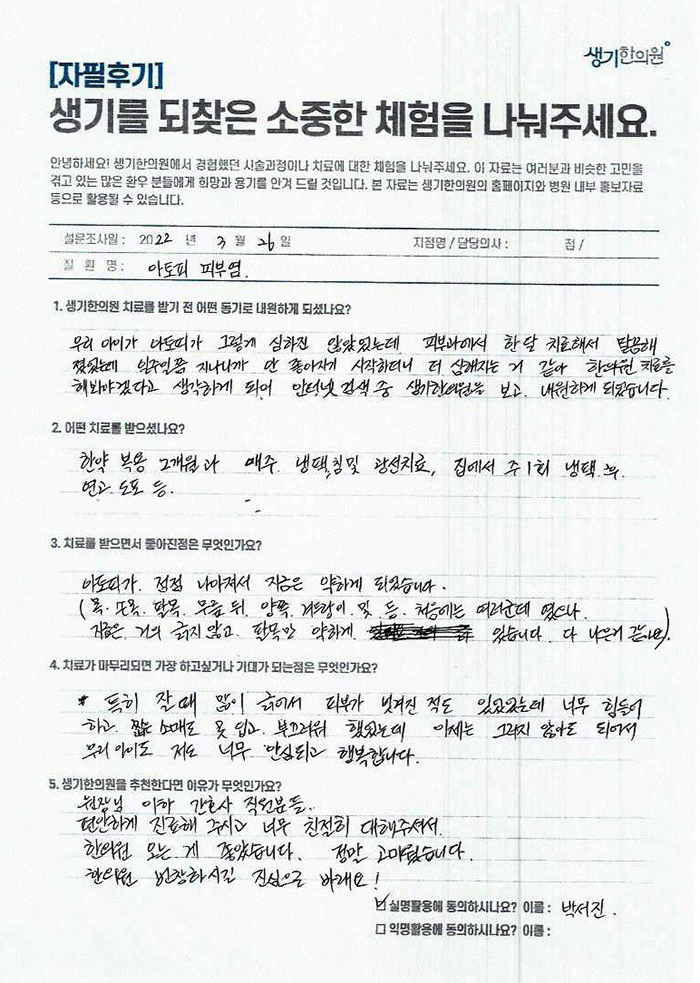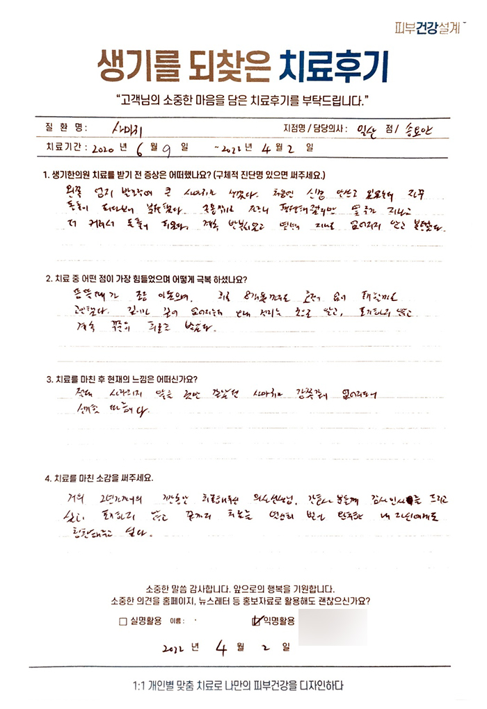 생기한의원과 함께하신 생생한 자필 및 영상 후기를 소개합니다.