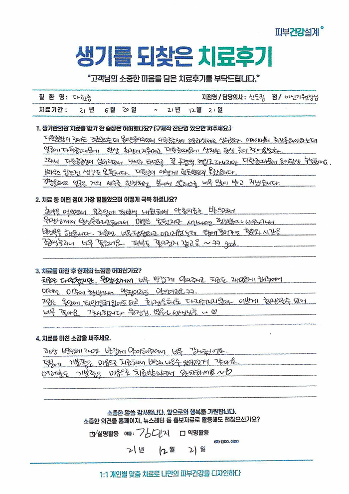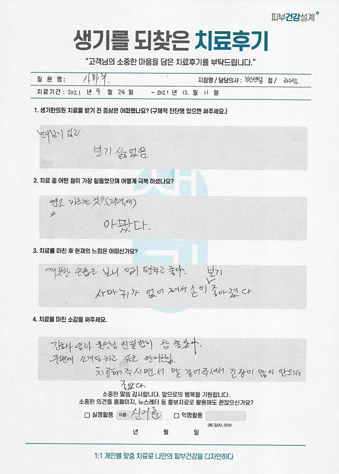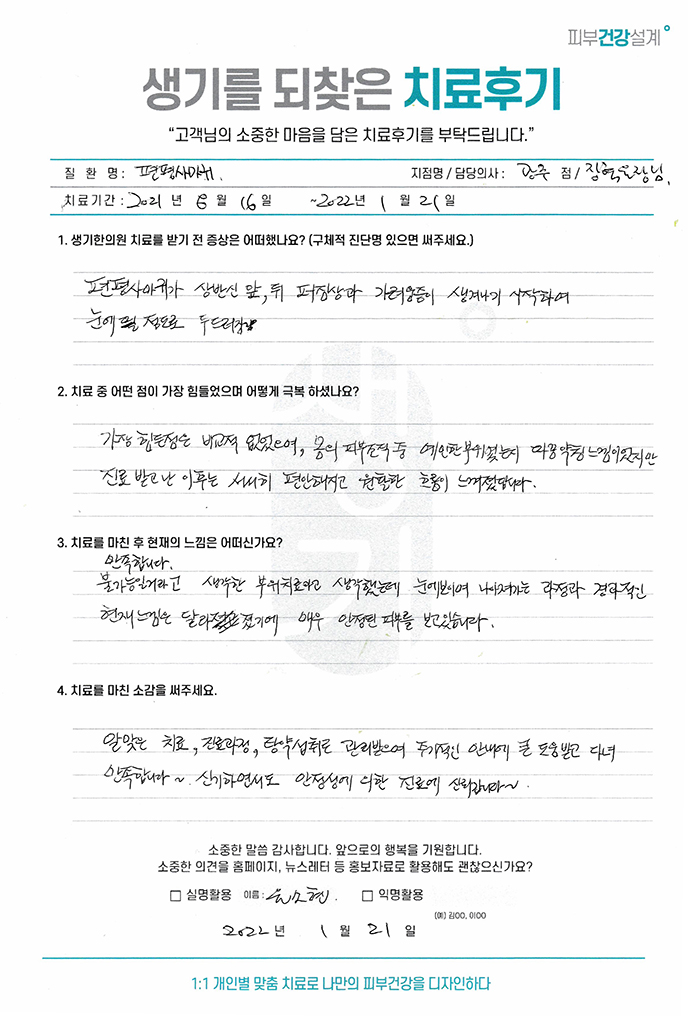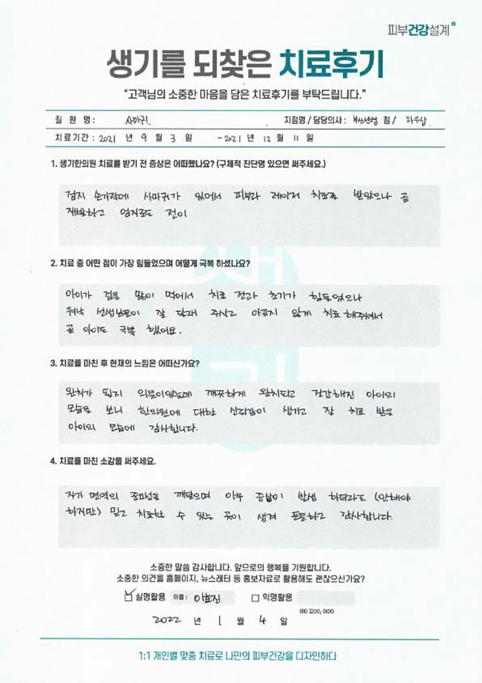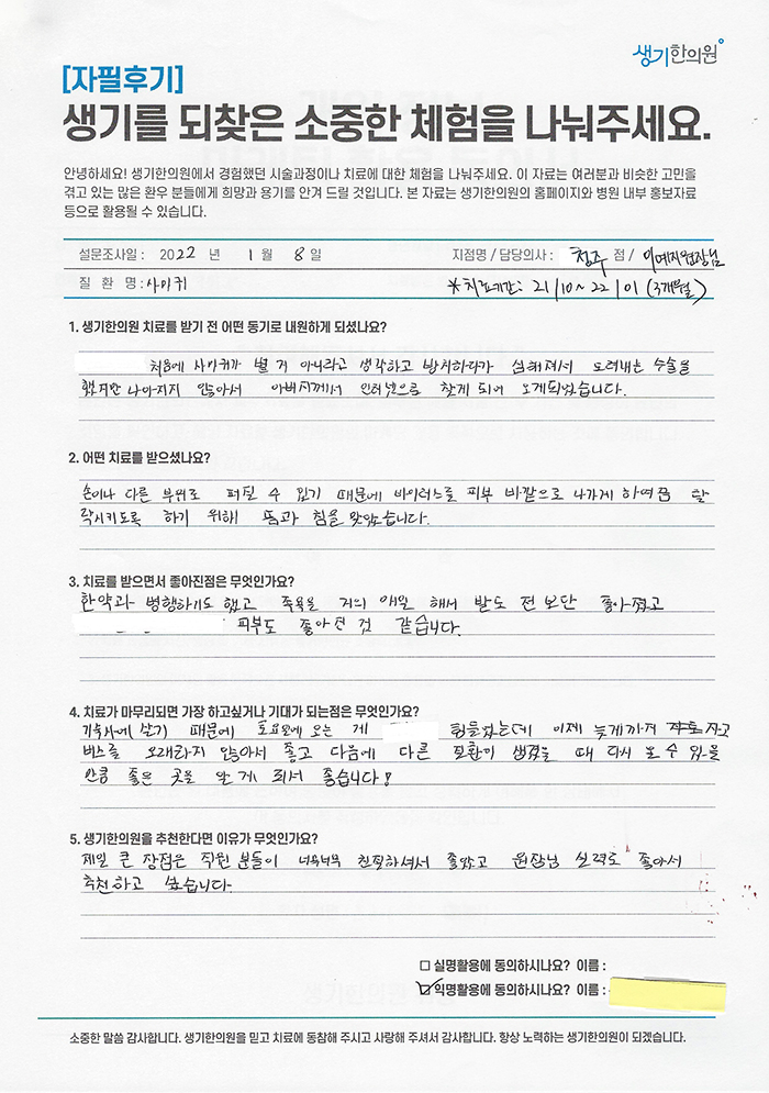 생기한의원과 함께하신 생생한 자필 및 영상 후기를 소개합니다.