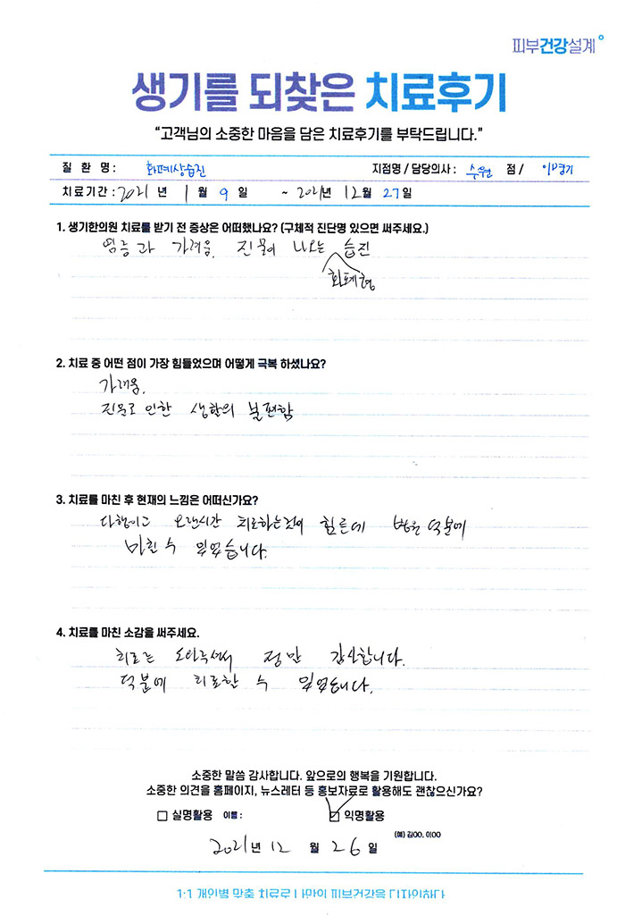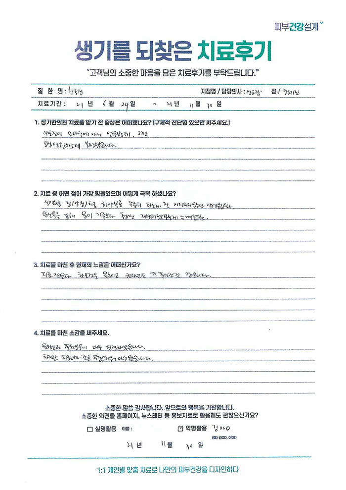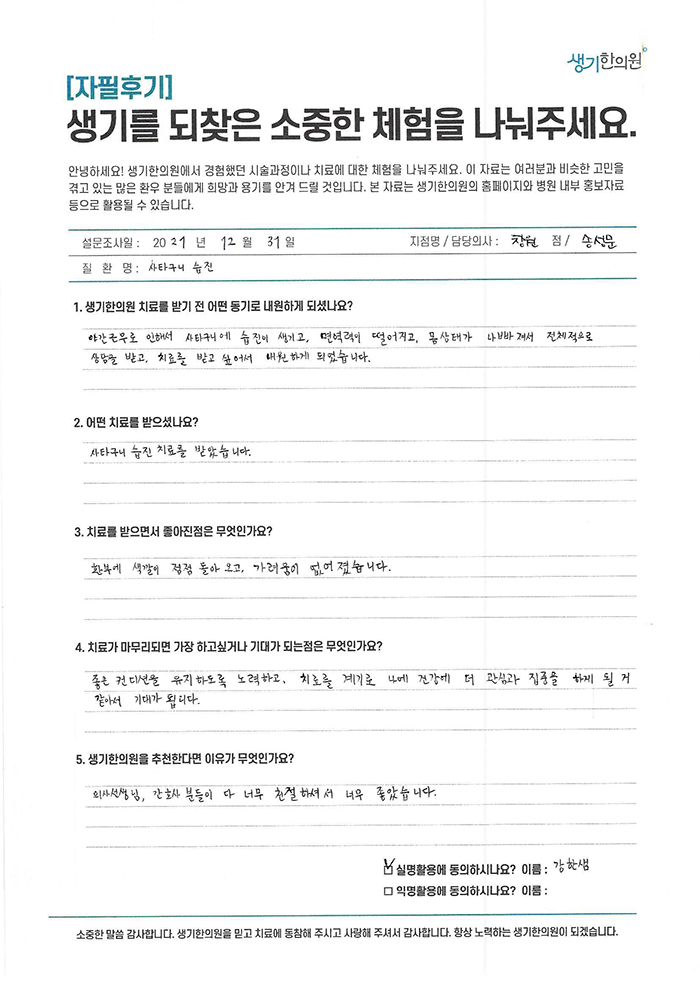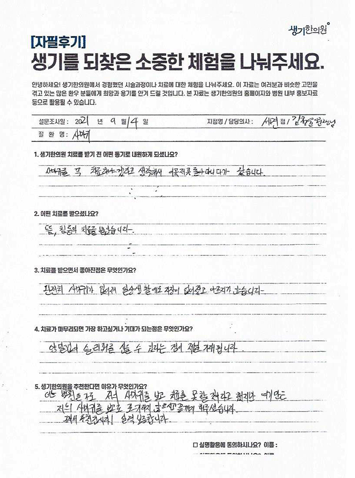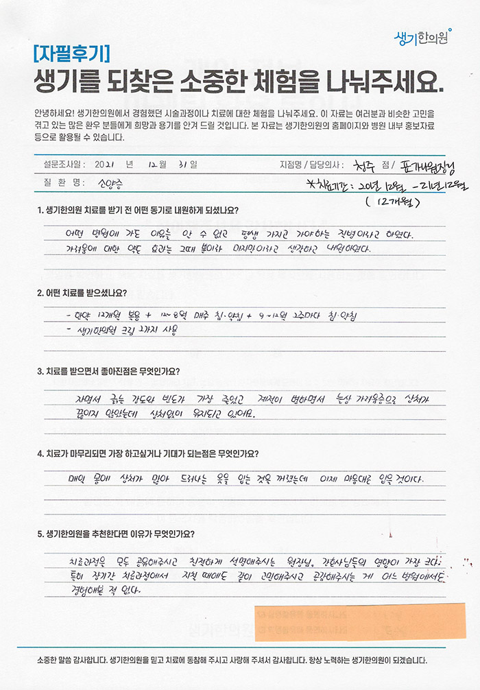 생기한의원과 함께하신 생생한 자필 및 영상 후기를 소개합니다.