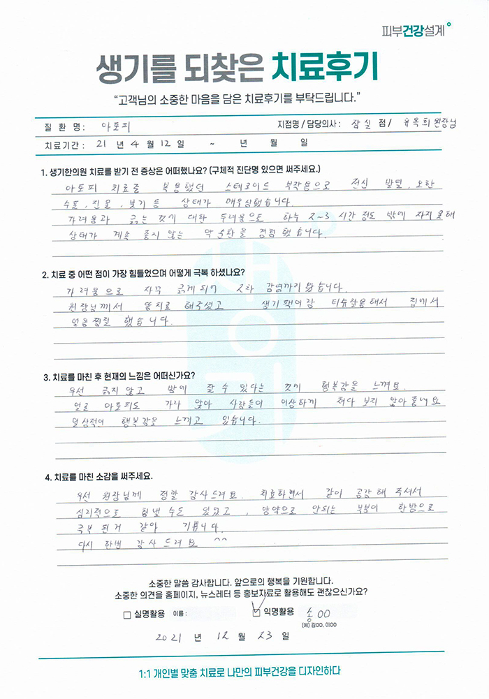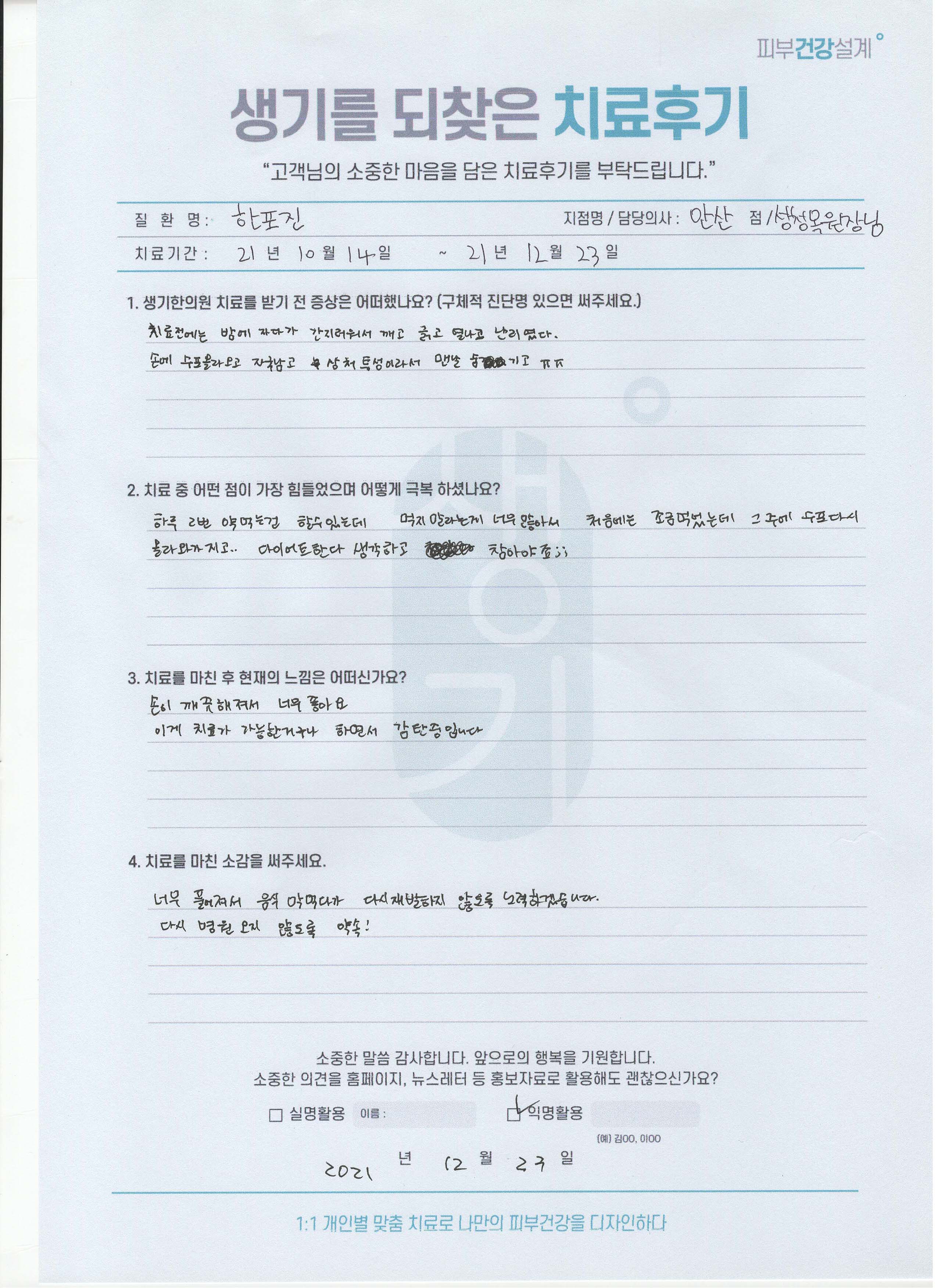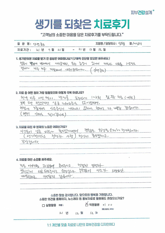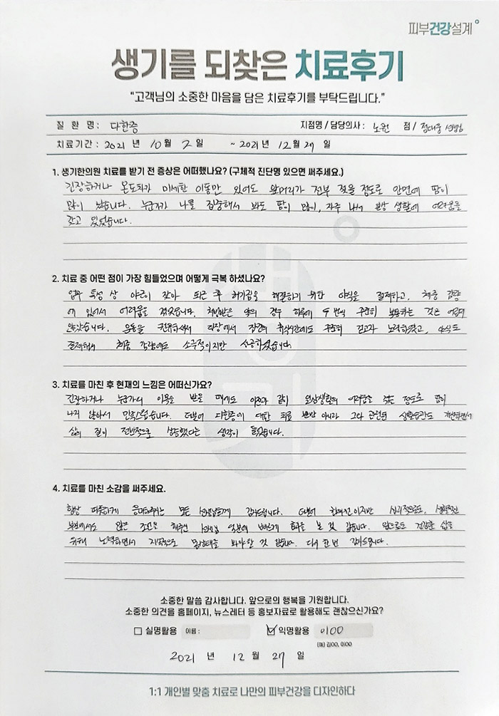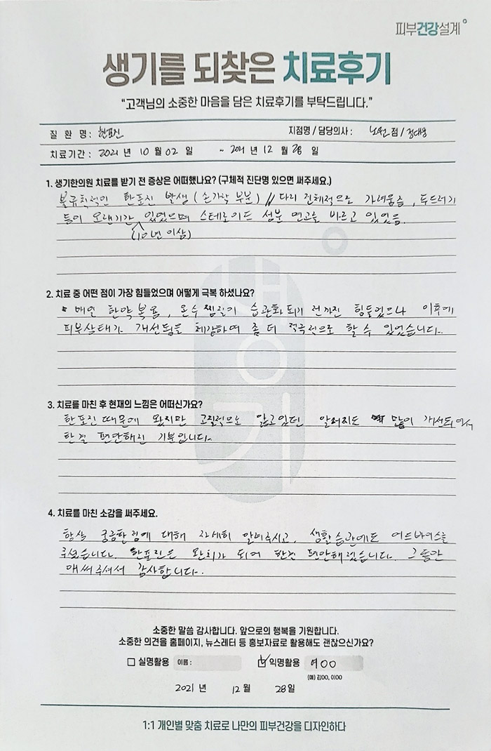 생기한의원과 함께하신 생생한 자필 및 영상 후기를 소개합니다.