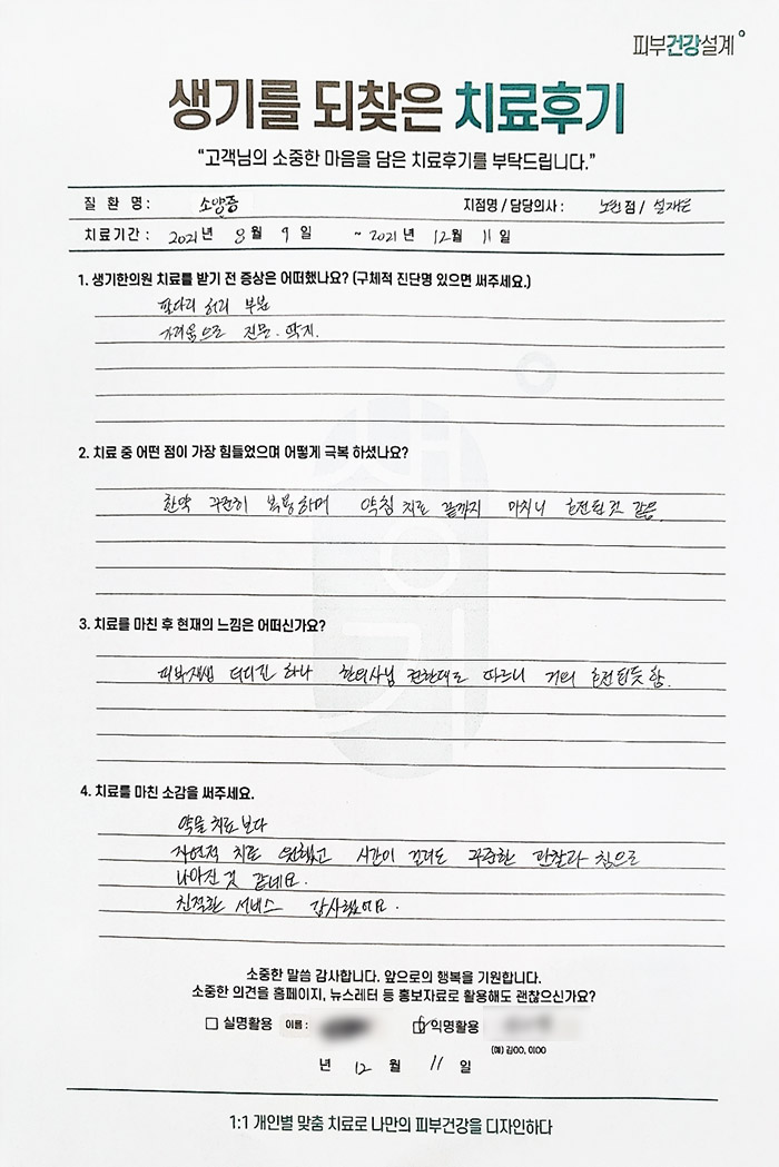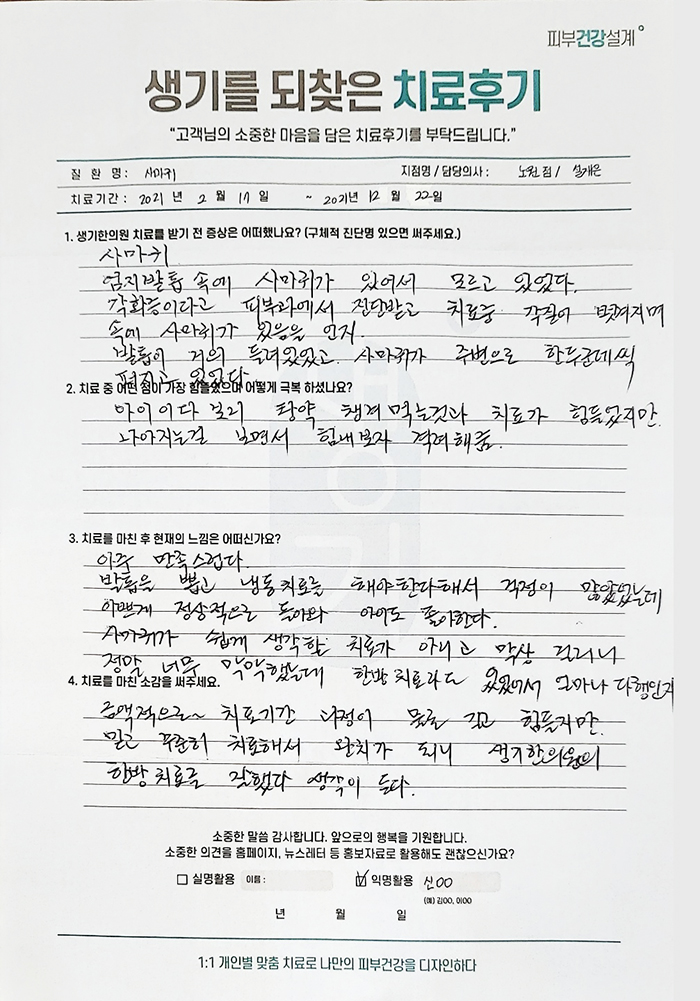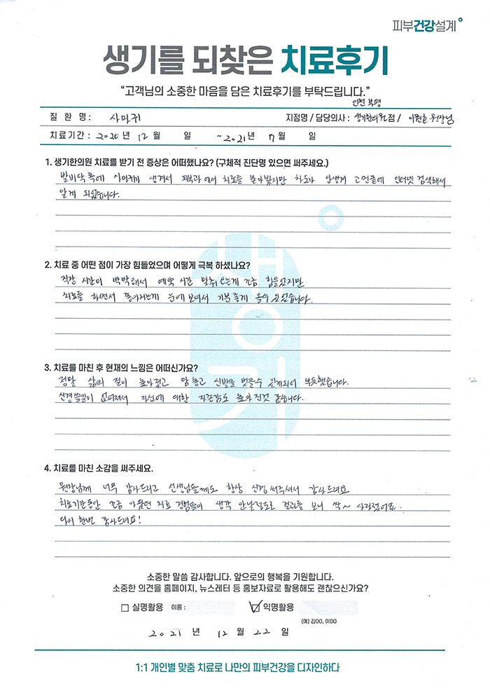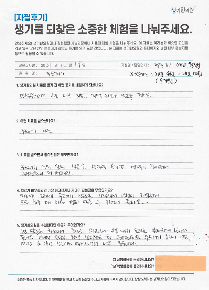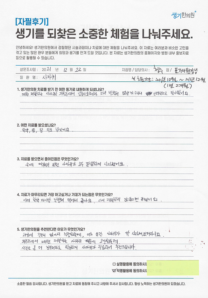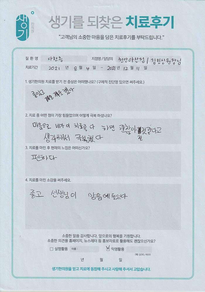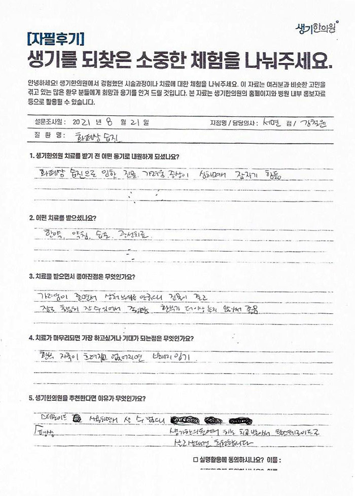 생기한의원과 함께하신 생생한 자필 및 영상 후기를 소개합니다.