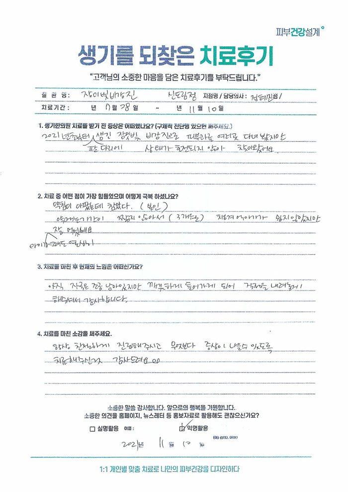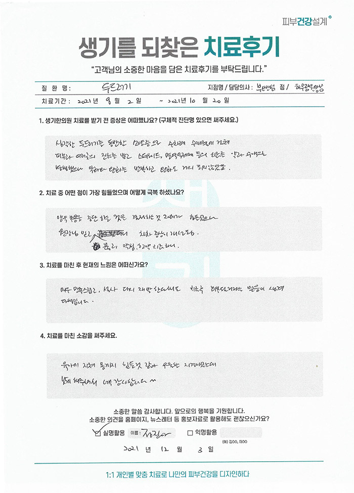생기한의원과 함께하신 생생한 자필 및 영상 후기를 소개합니다.