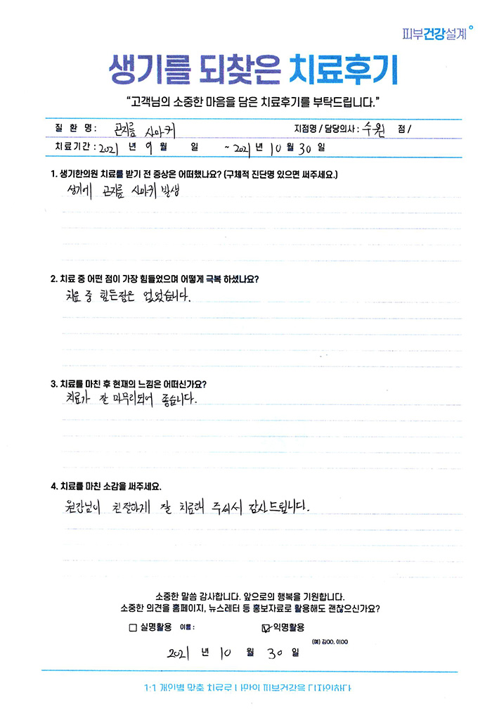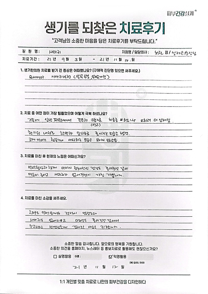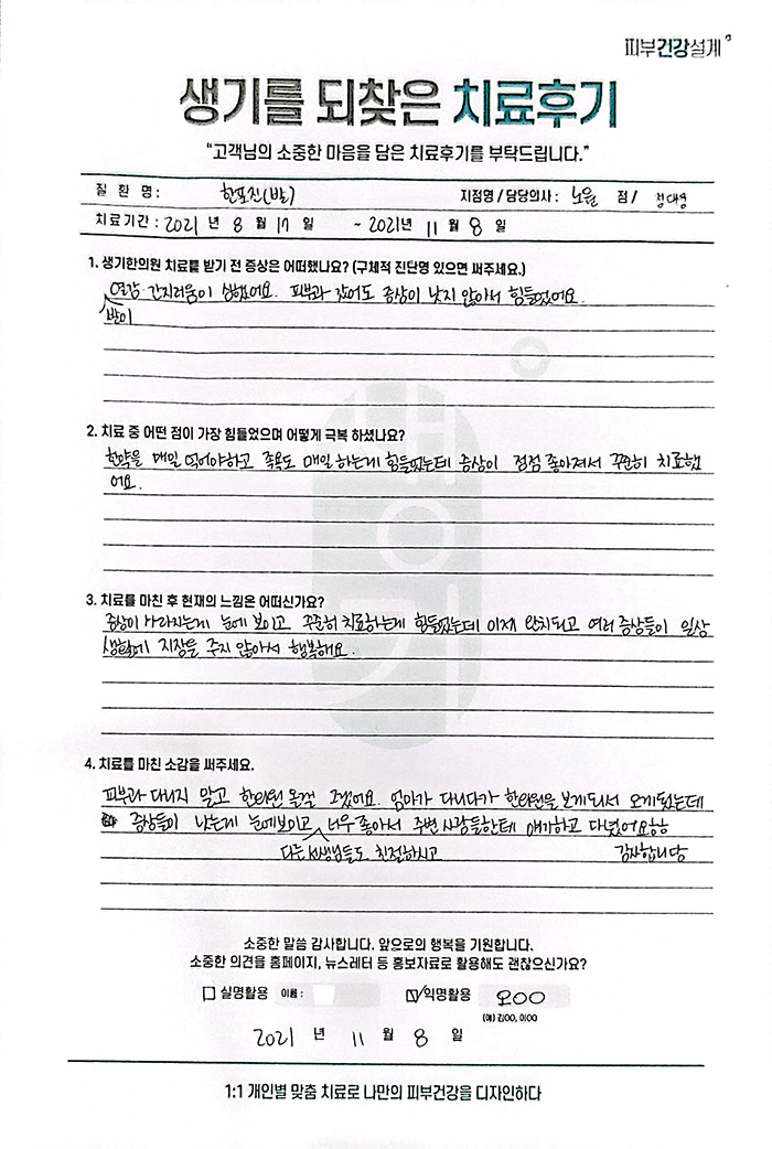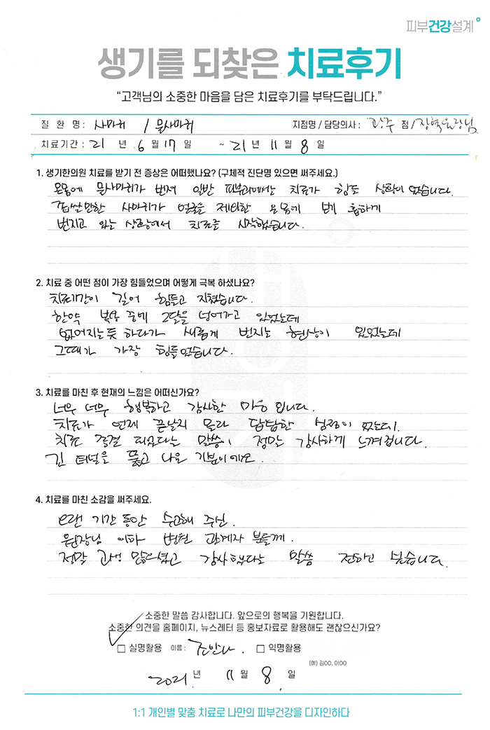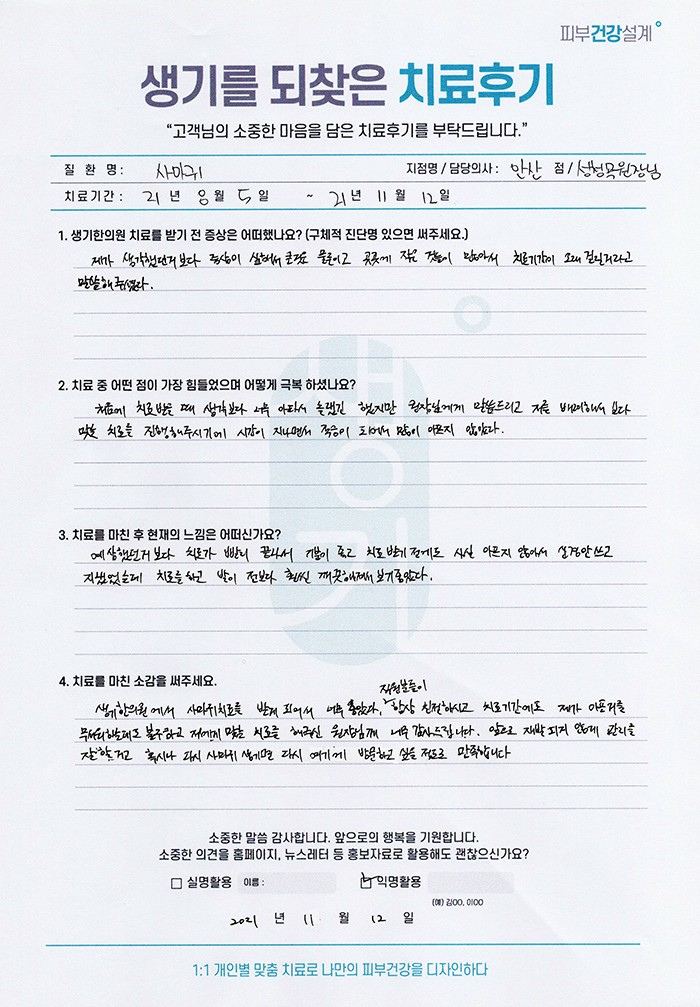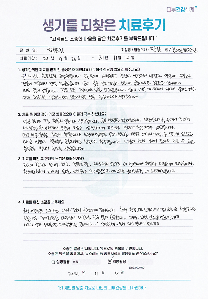 생기한의원과 함께하신 생생한 자필 및 영상 후기를 소개합니다.