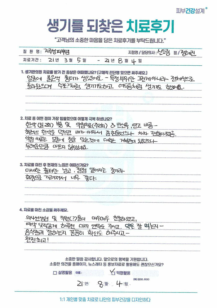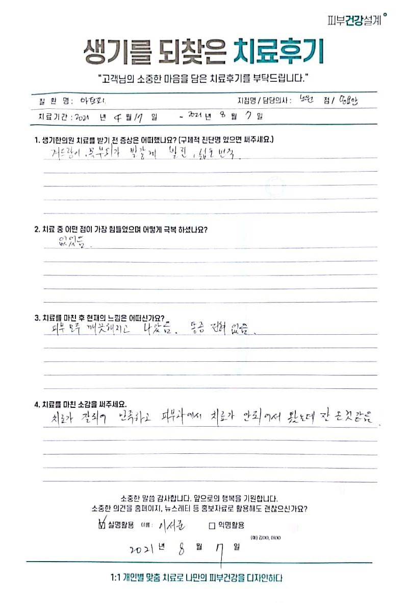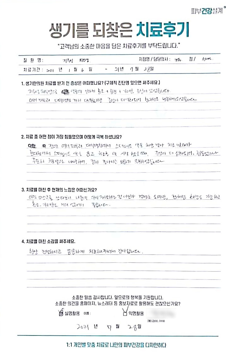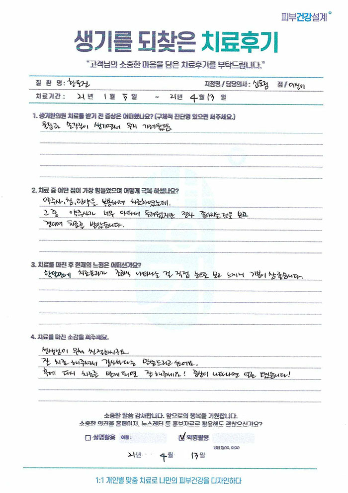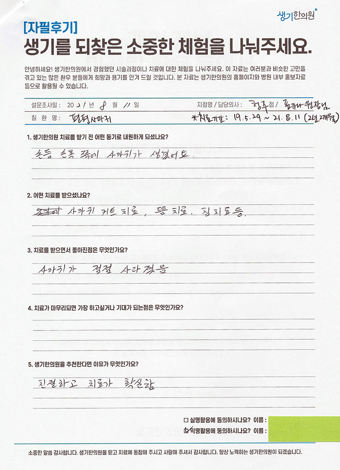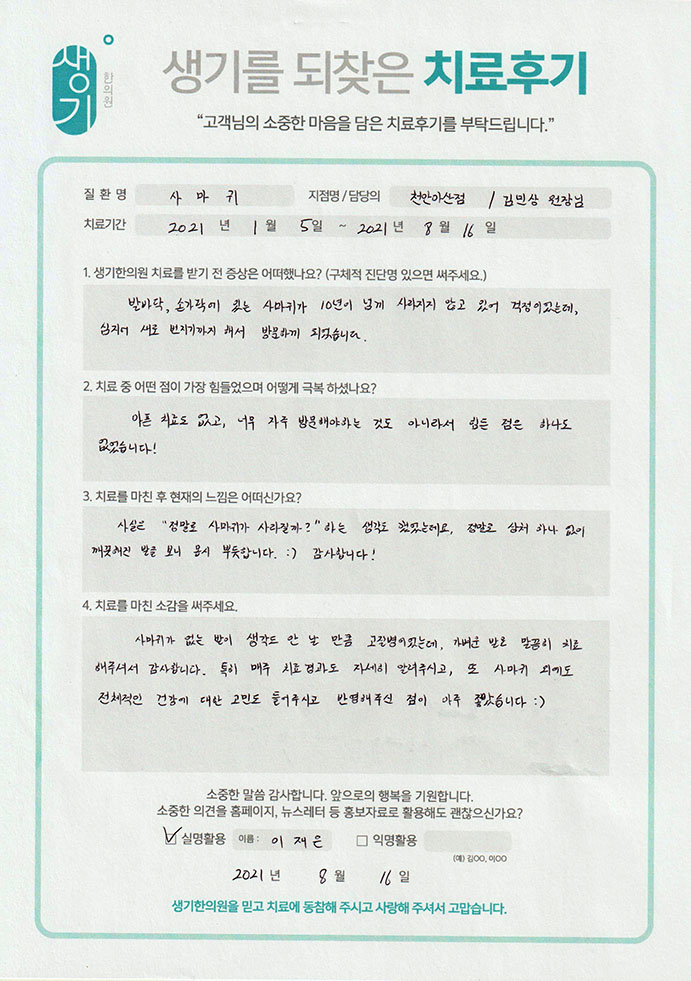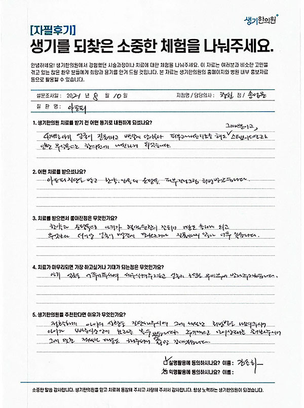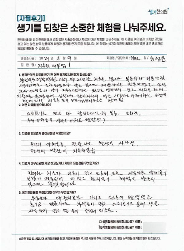 생기한의원과 함께하신 생생한 자필 및 영상 후기를 소개합니다.