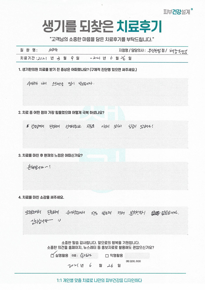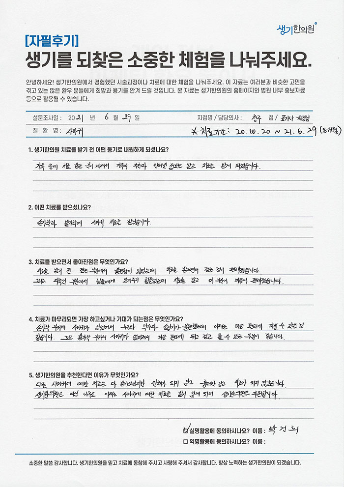 생기한의원과 함께하신 생생한 자필 및 영상 후기를 소개합니다.