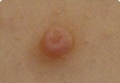 물사마귀의 특징적인 배꼽모양 함몰